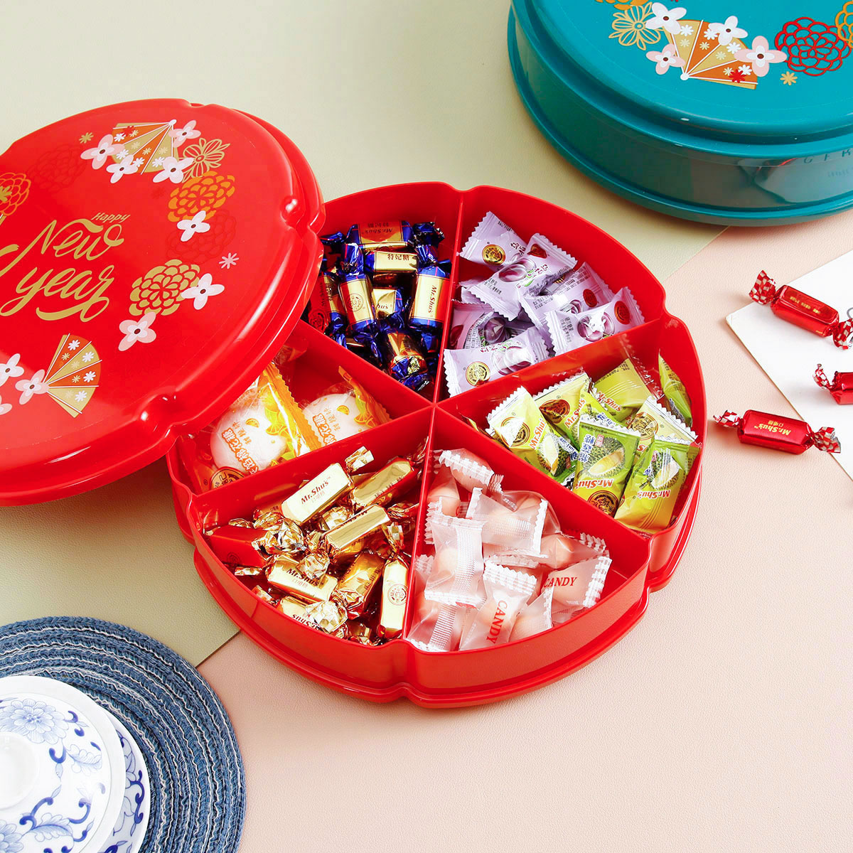單層/雙層圓型/花型旋轉(zhuǎn)糖果盒  紅色/綠色