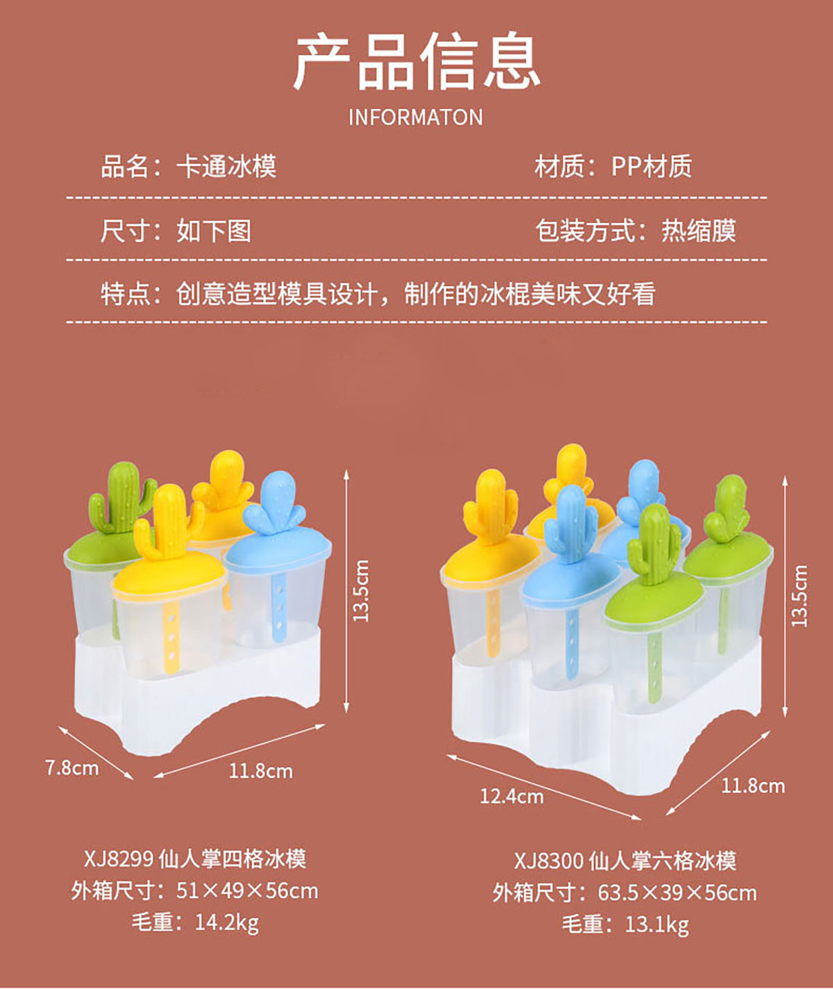 仙人掌四格/六格冰模