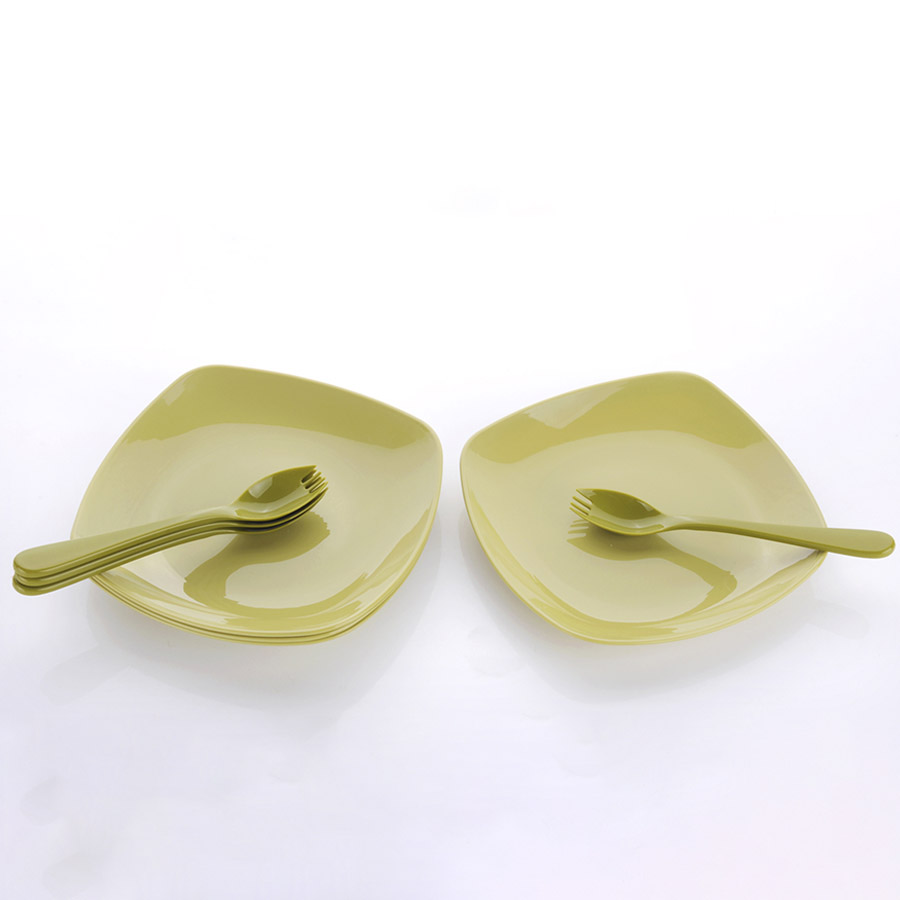得力熊歐式大號簡約正方餐盤(4pcs)( 配4pcs叉匙)