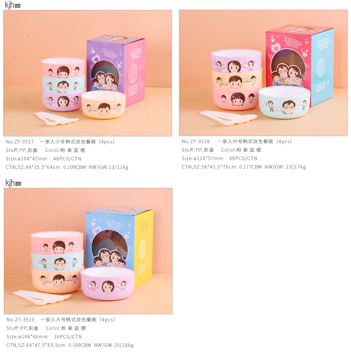 一家人小號(hào)/中號(hào)/大號(hào)韓式雙色餐碗(4pcs)