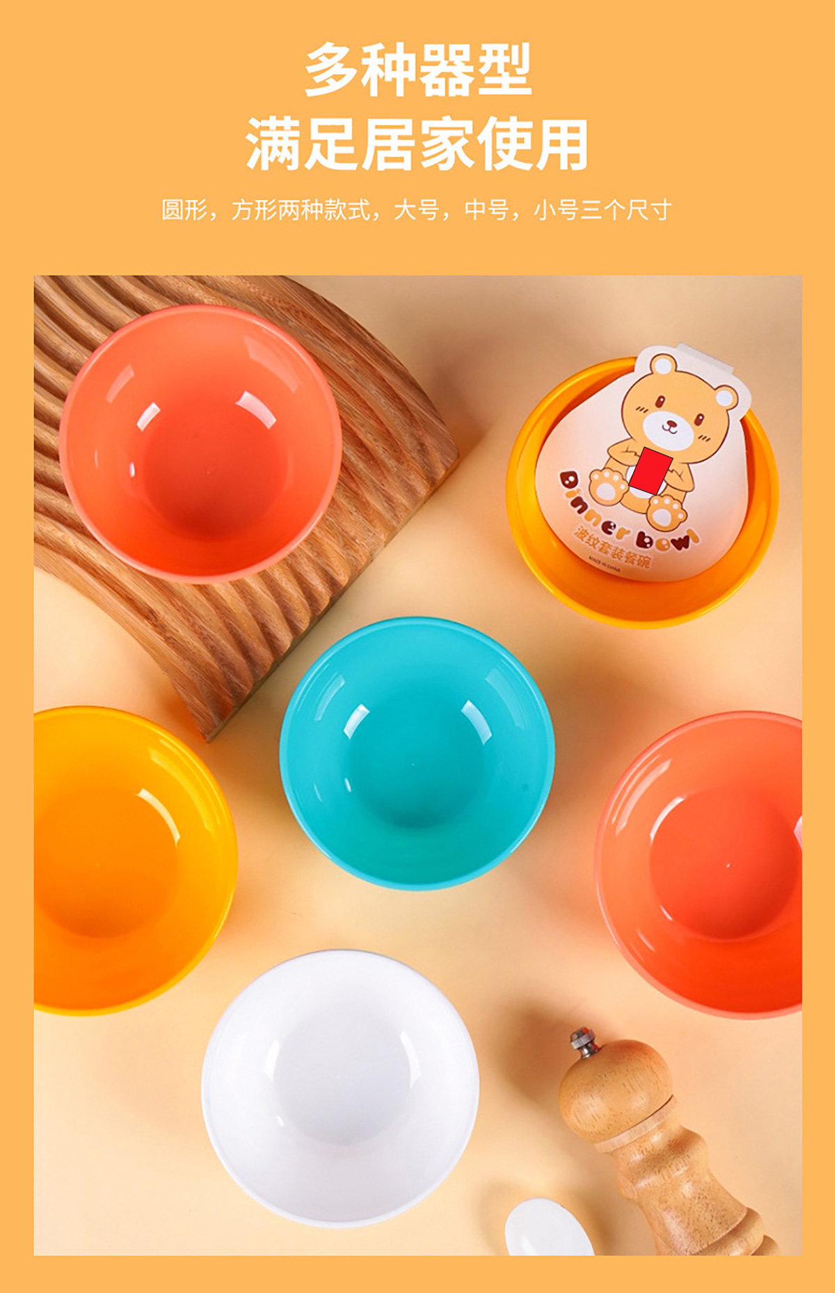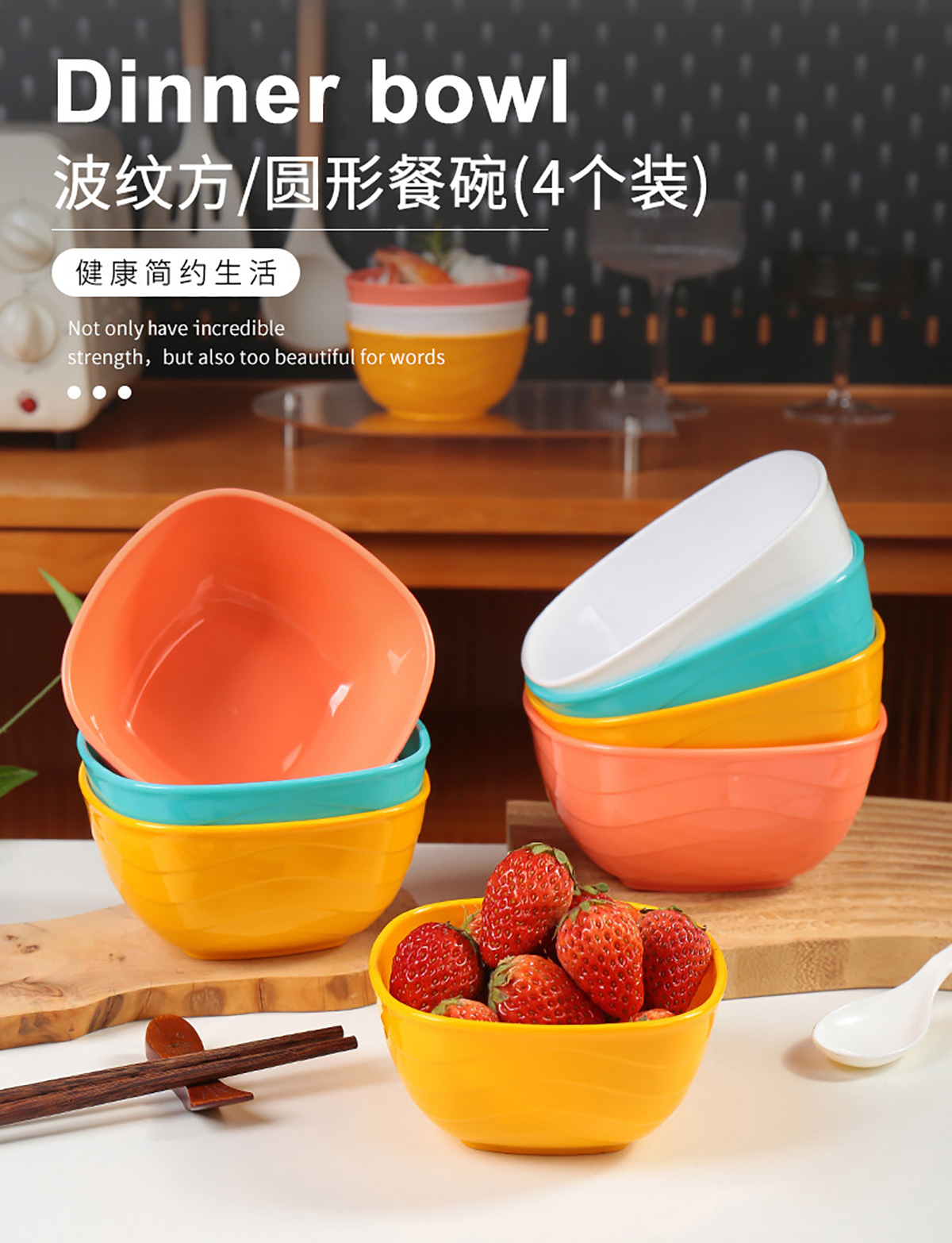 波紋圓形/方形餐碗  小號(hào)/中號(hào)/大號(hào)(4個(gè)裝)