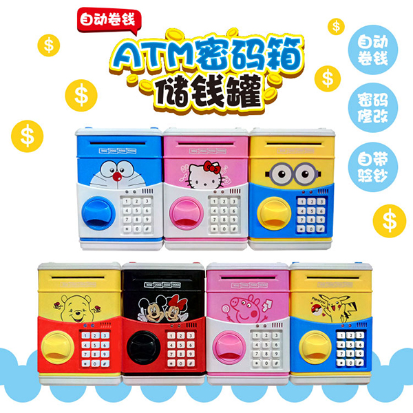 比卡丘自動卷錢ATM密碼箱存錢罐