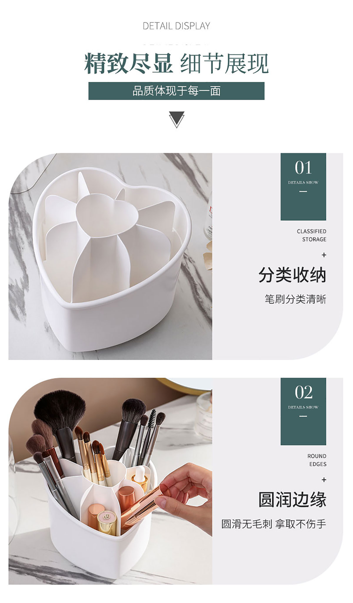 心形化妝收納盒 (帶蓋/不帶蓋)