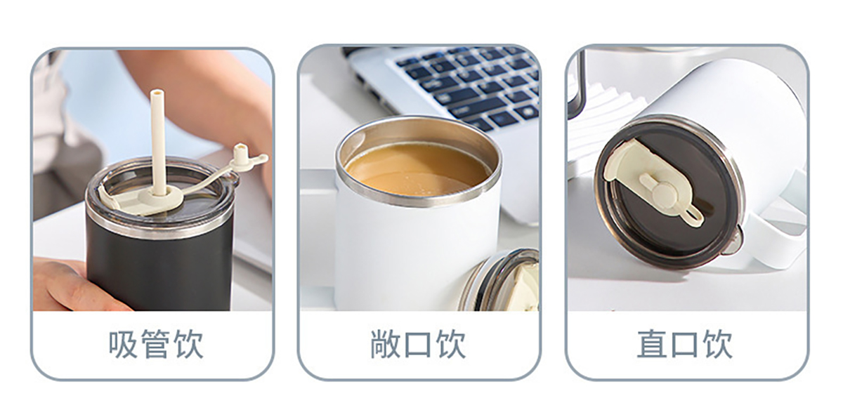 不銹鋼無(wú)柄/帶柄辦公杯(帶蓋+吸管)