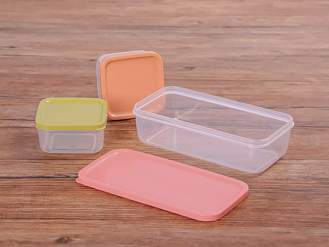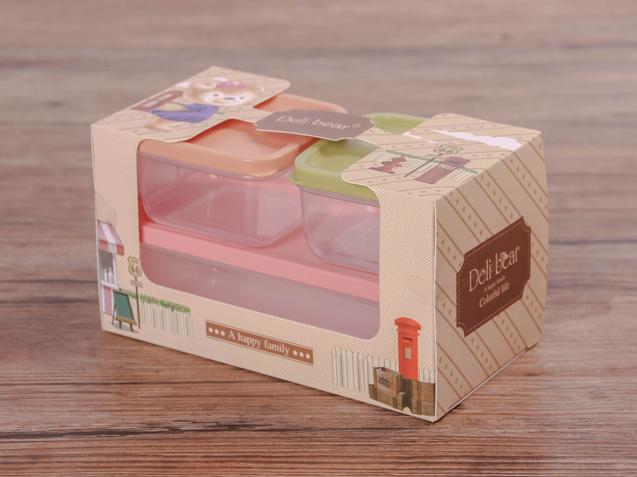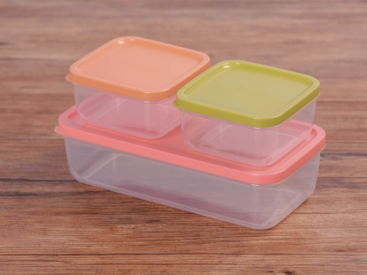 得力熊長(zhǎng)方3件套疊疊保鮮盒(混色)