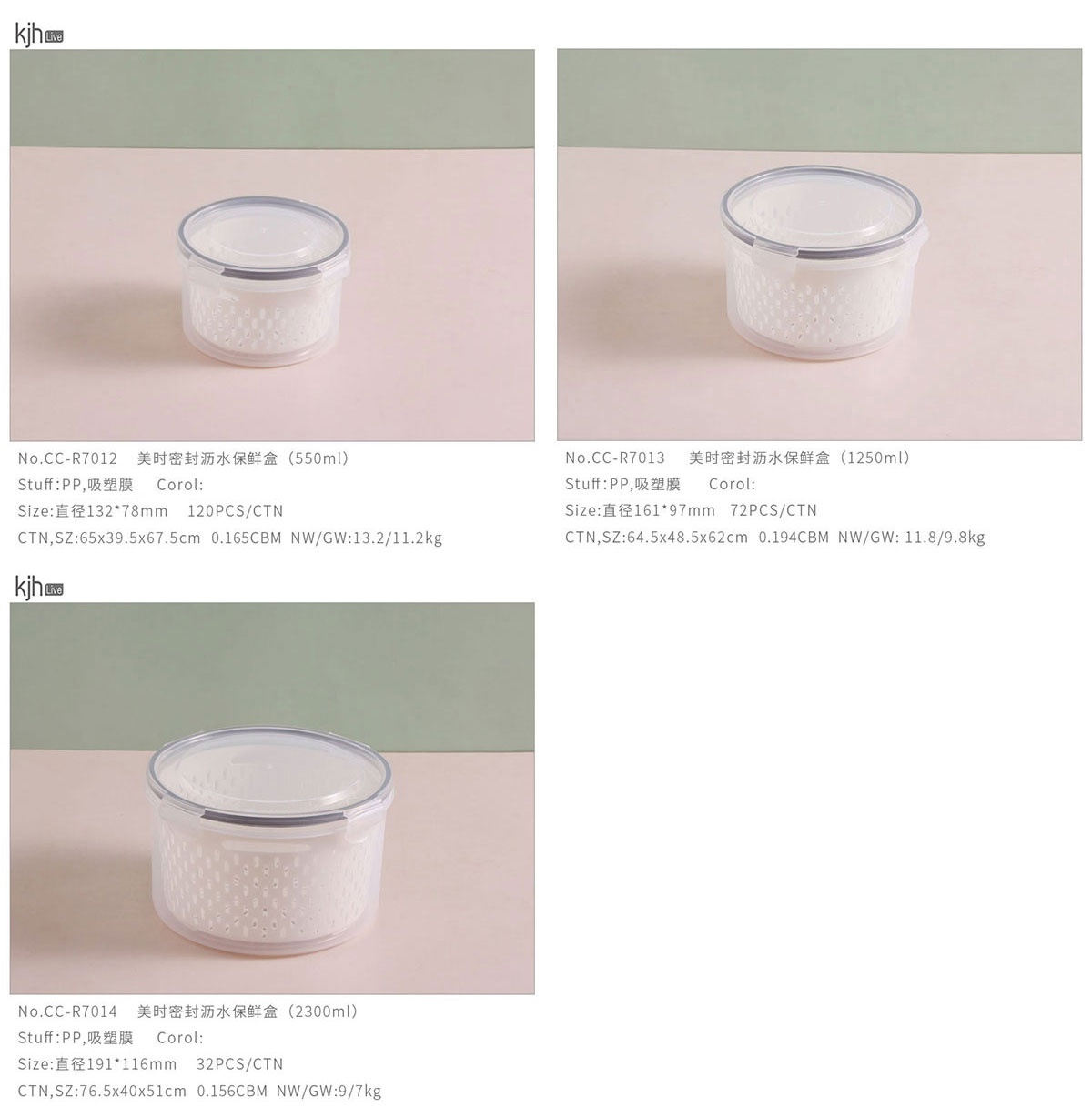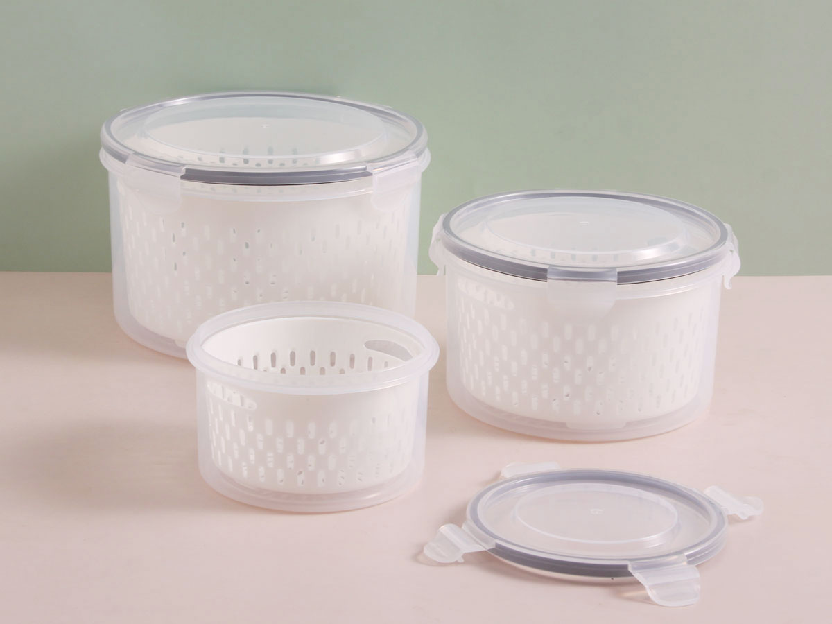美時(shí)圓形密封瀝水保鮮盒(550ml/1250m/2300ml)