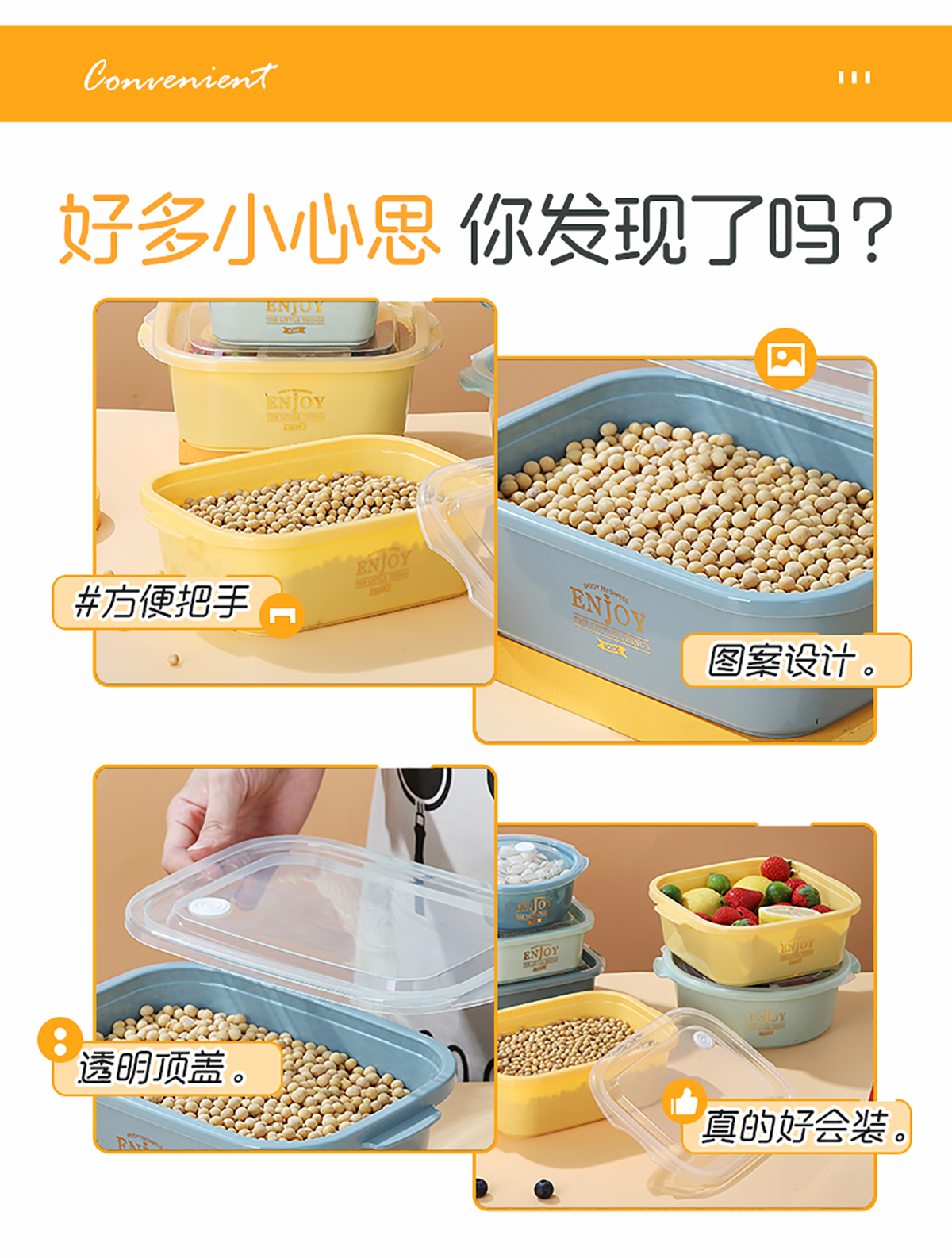 長方形輕便微波保鮮盒(小/大)(4個(gè)莊/3個(gè)莊)500ml/1300ml 2022新色