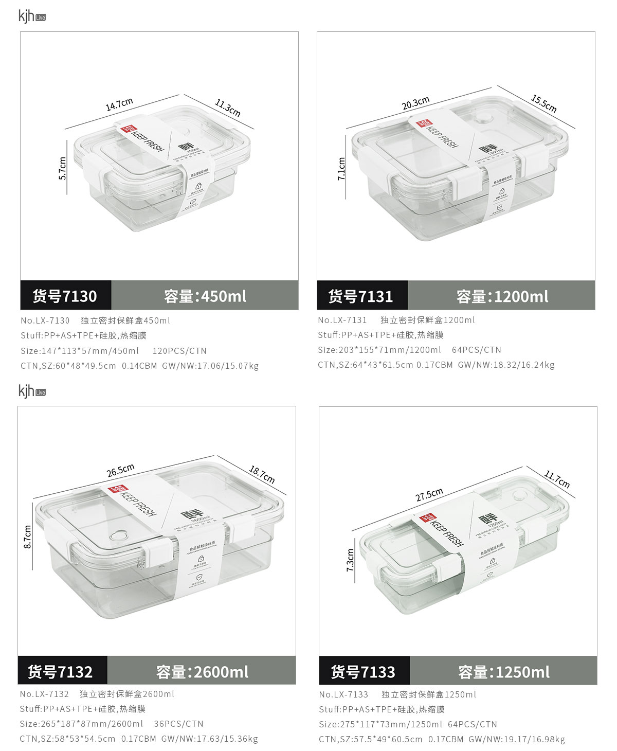 獨立密封保鮮盒450ml/1200ml/2600ml/1250ml/2000ml