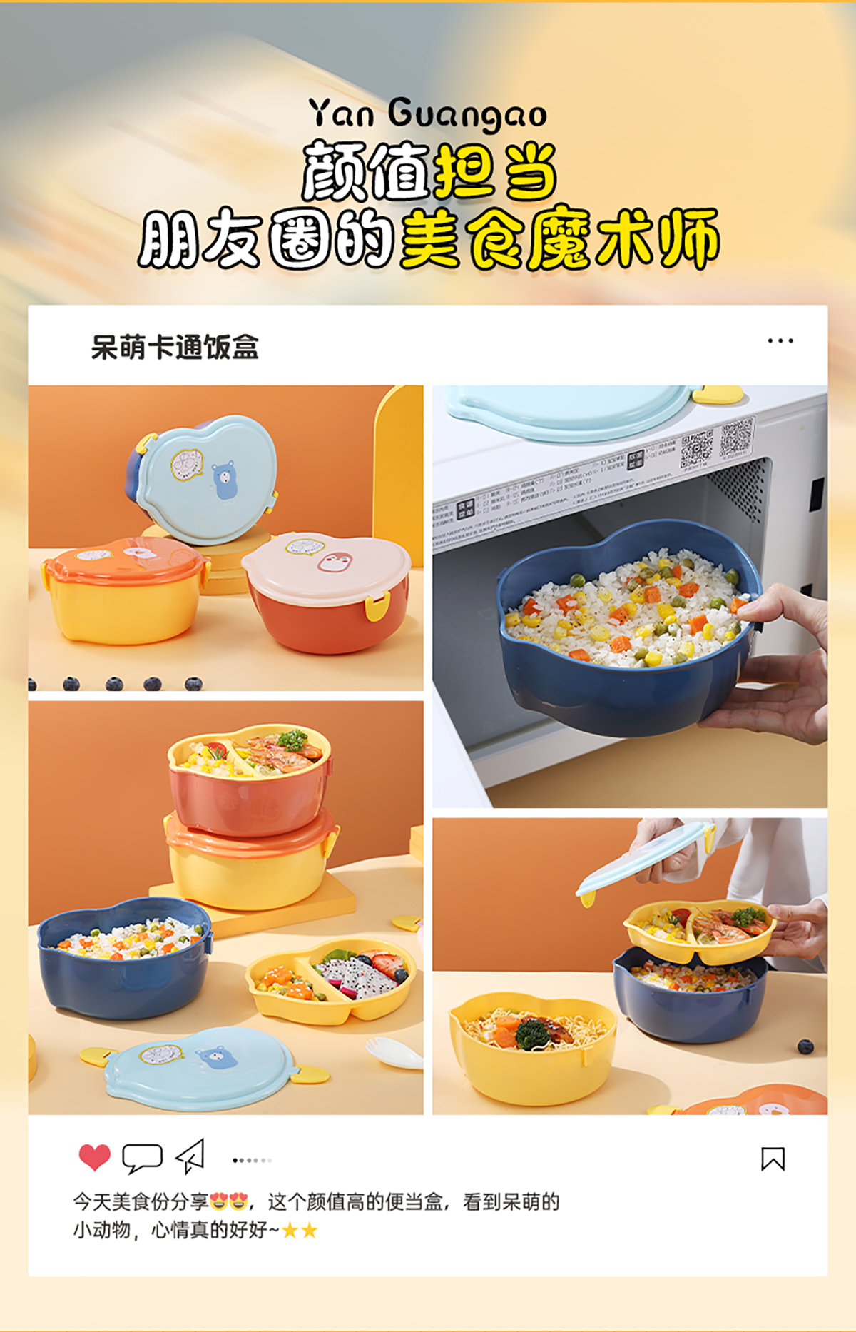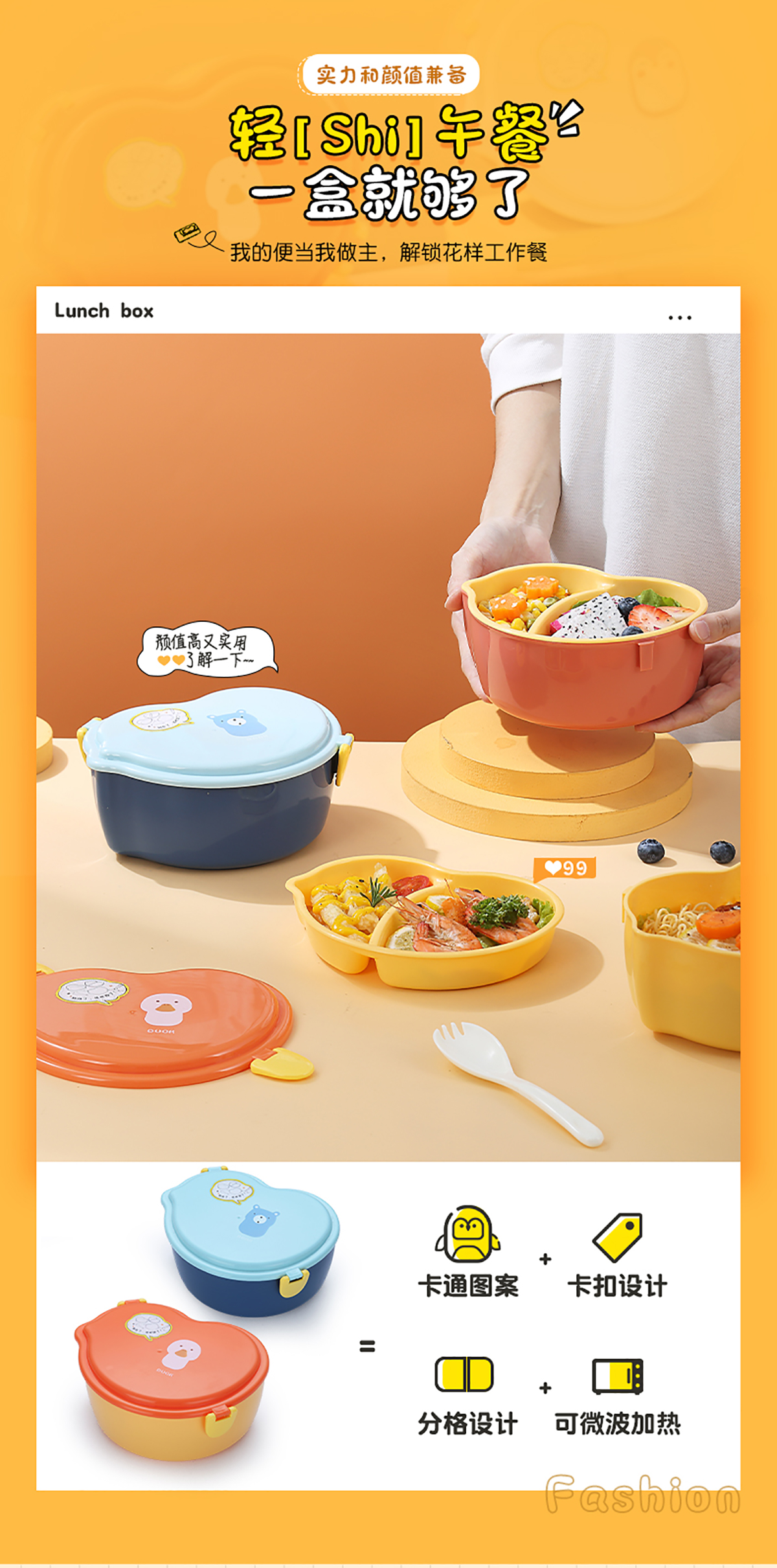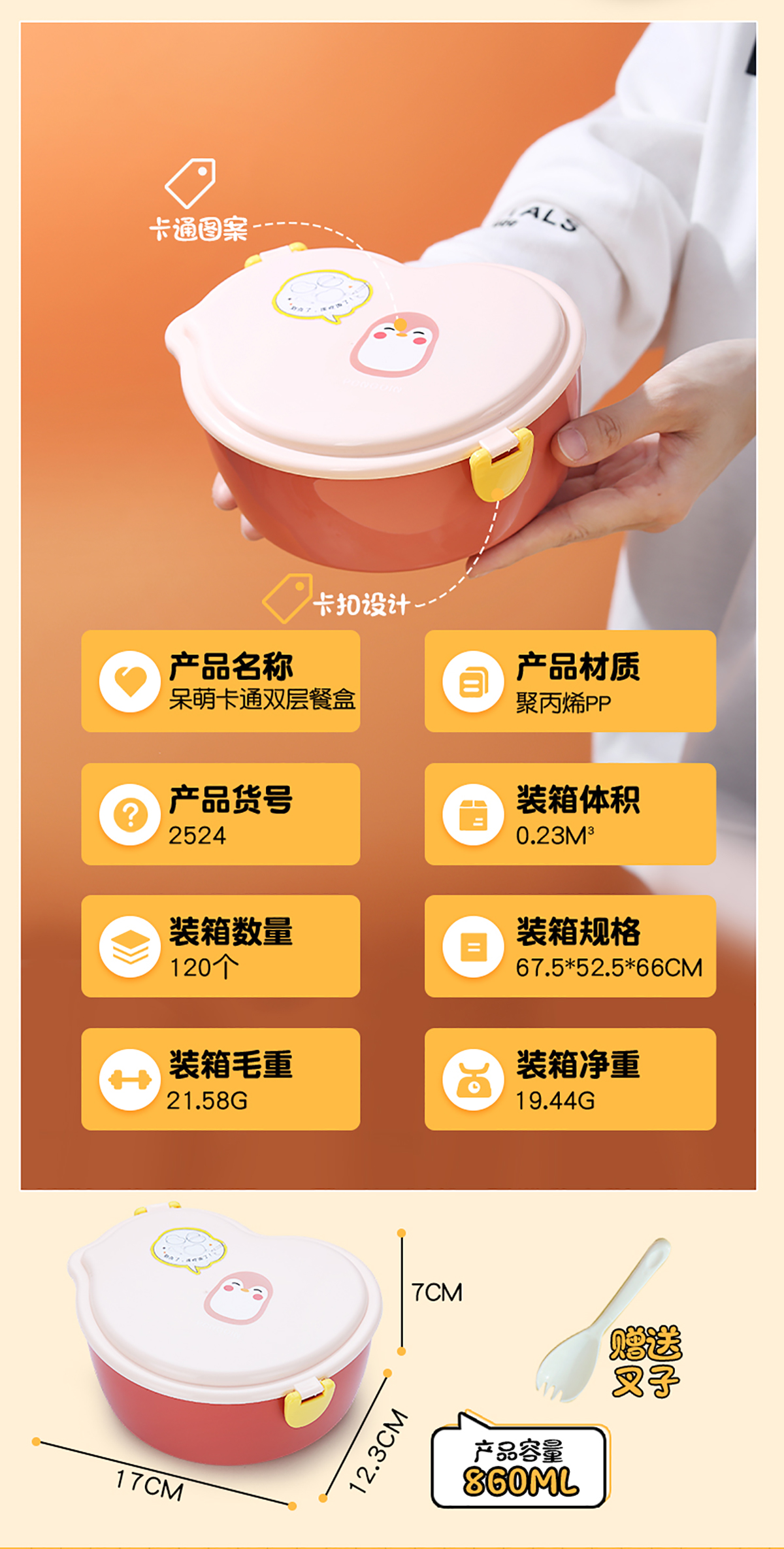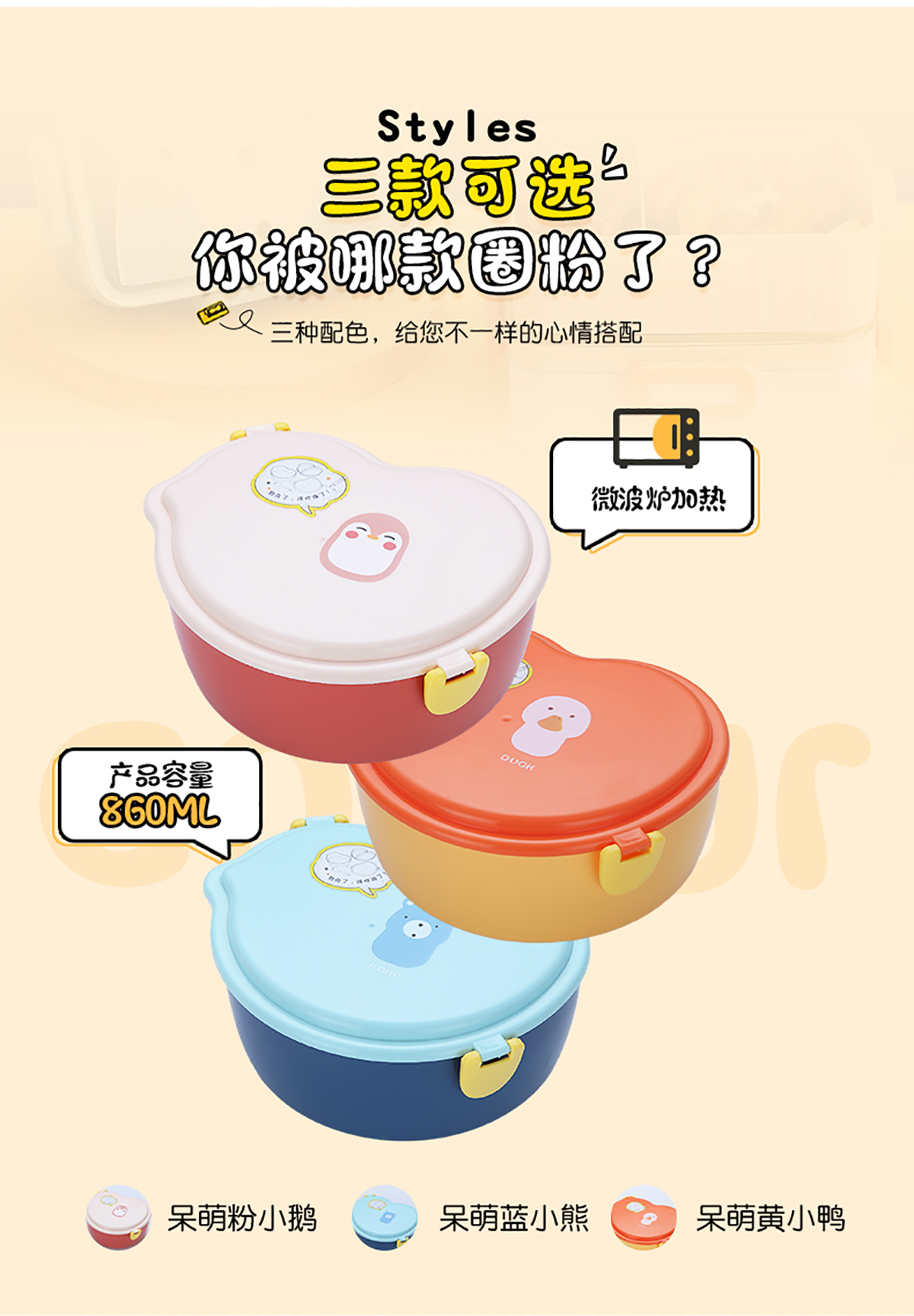 860ml呆萌卡通飯盒