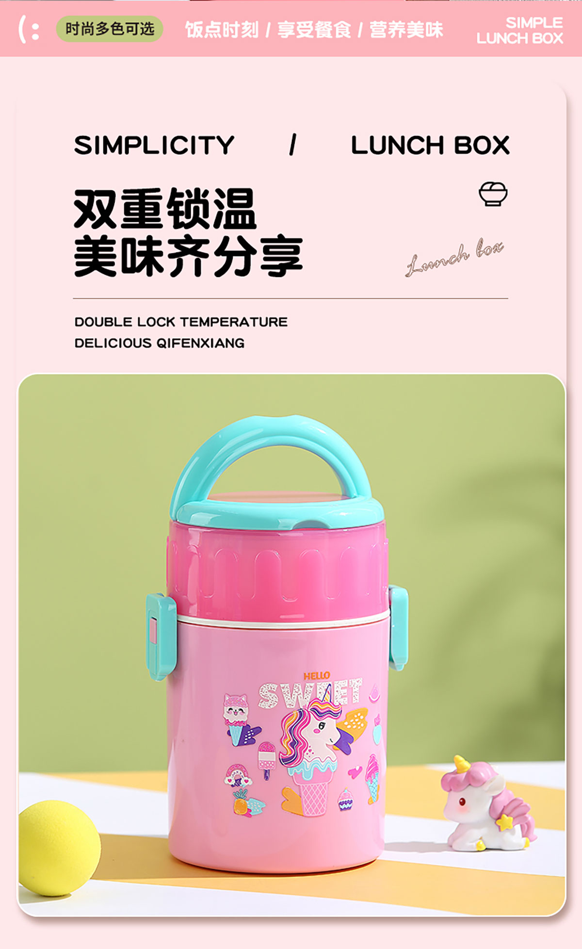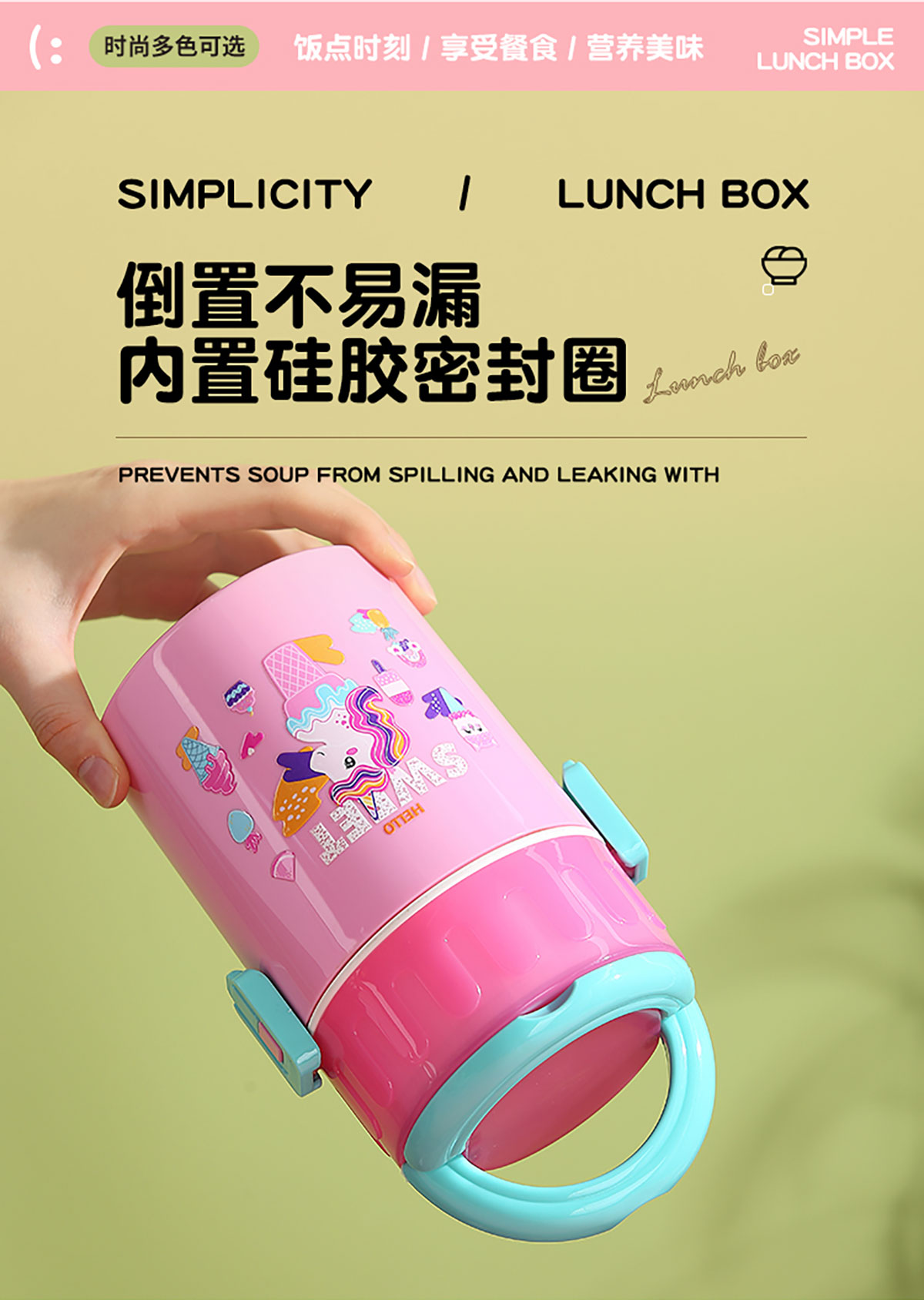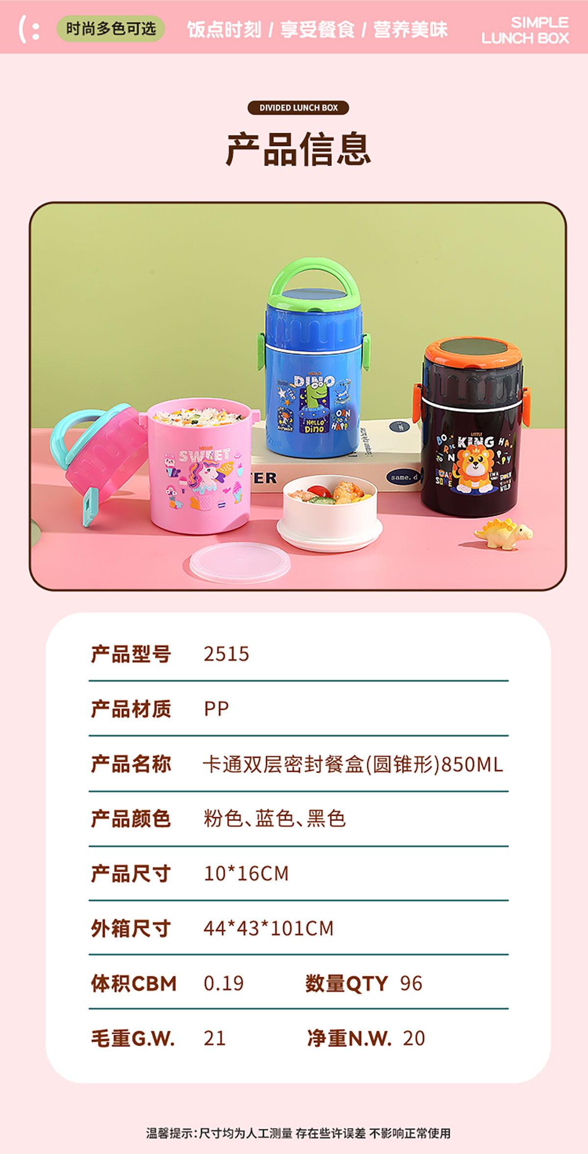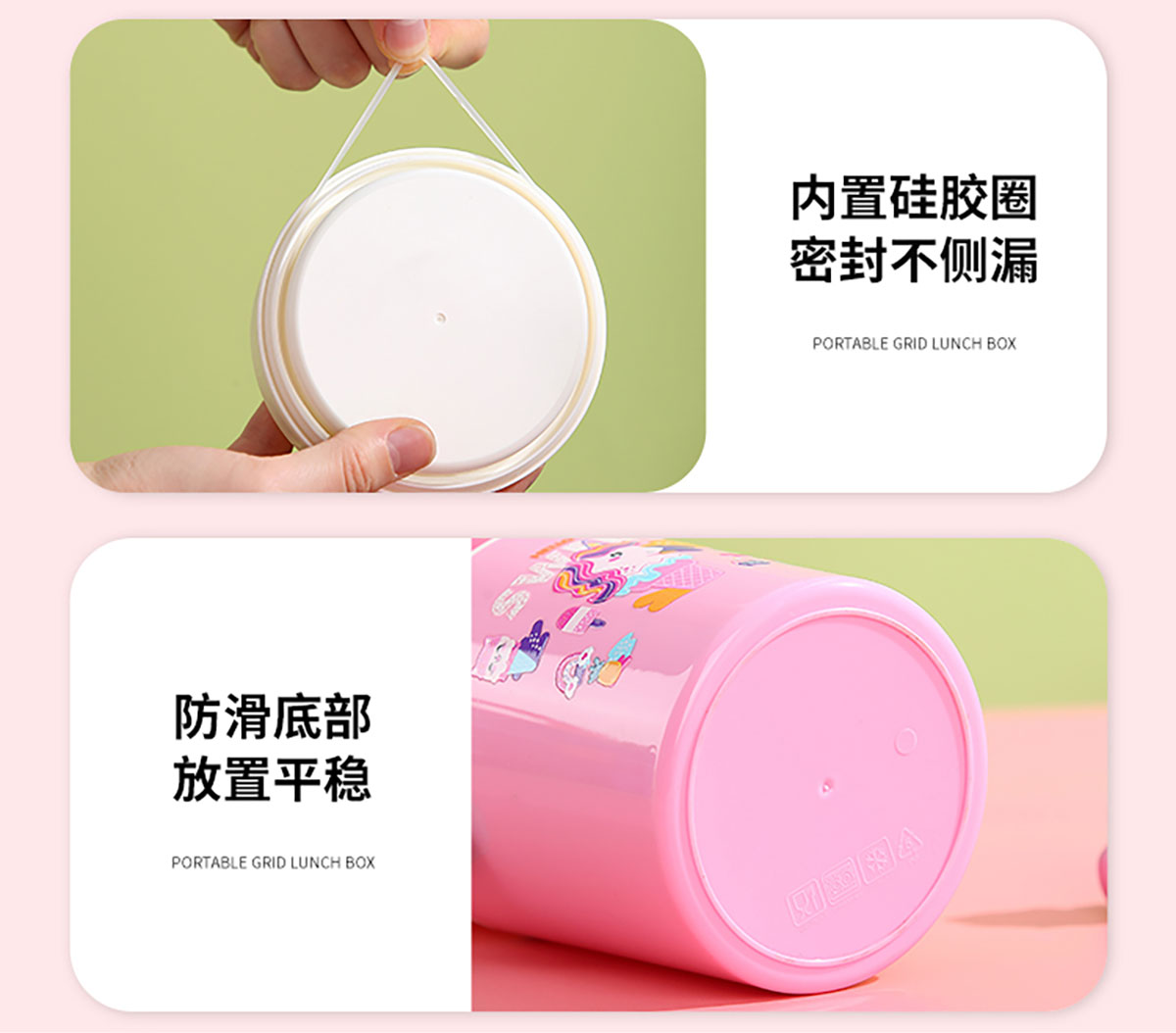 卡通雙層密封餐盒(圓錐形)900ml+PP勺