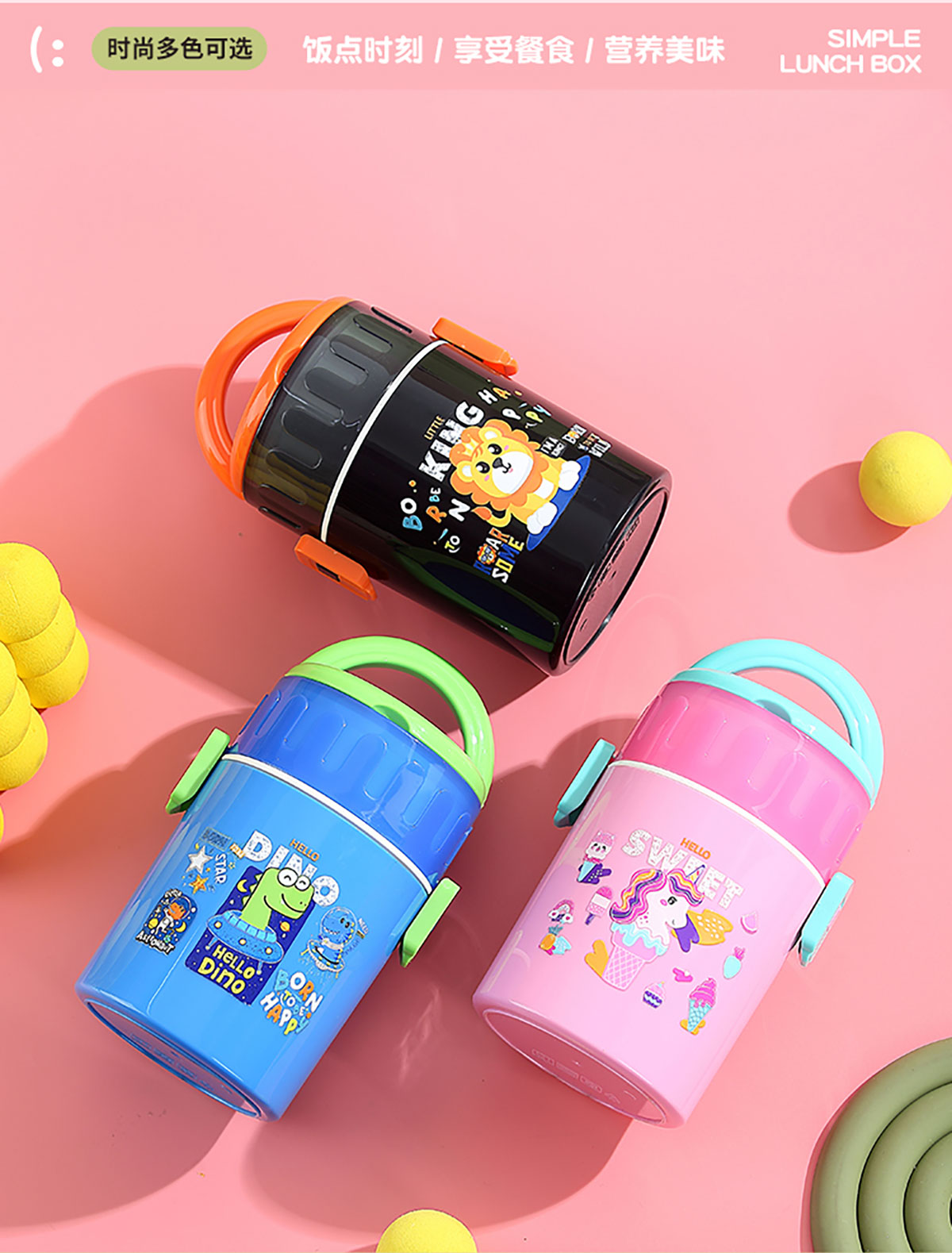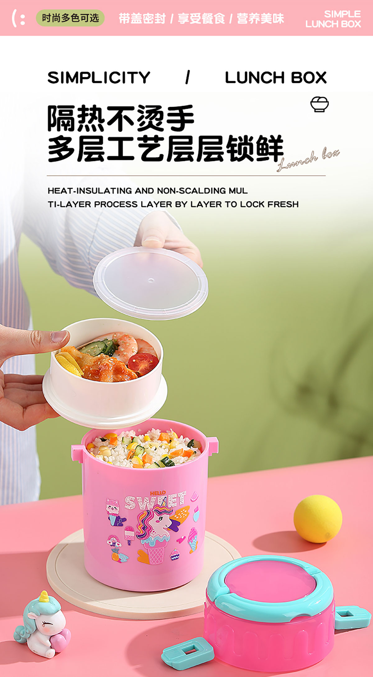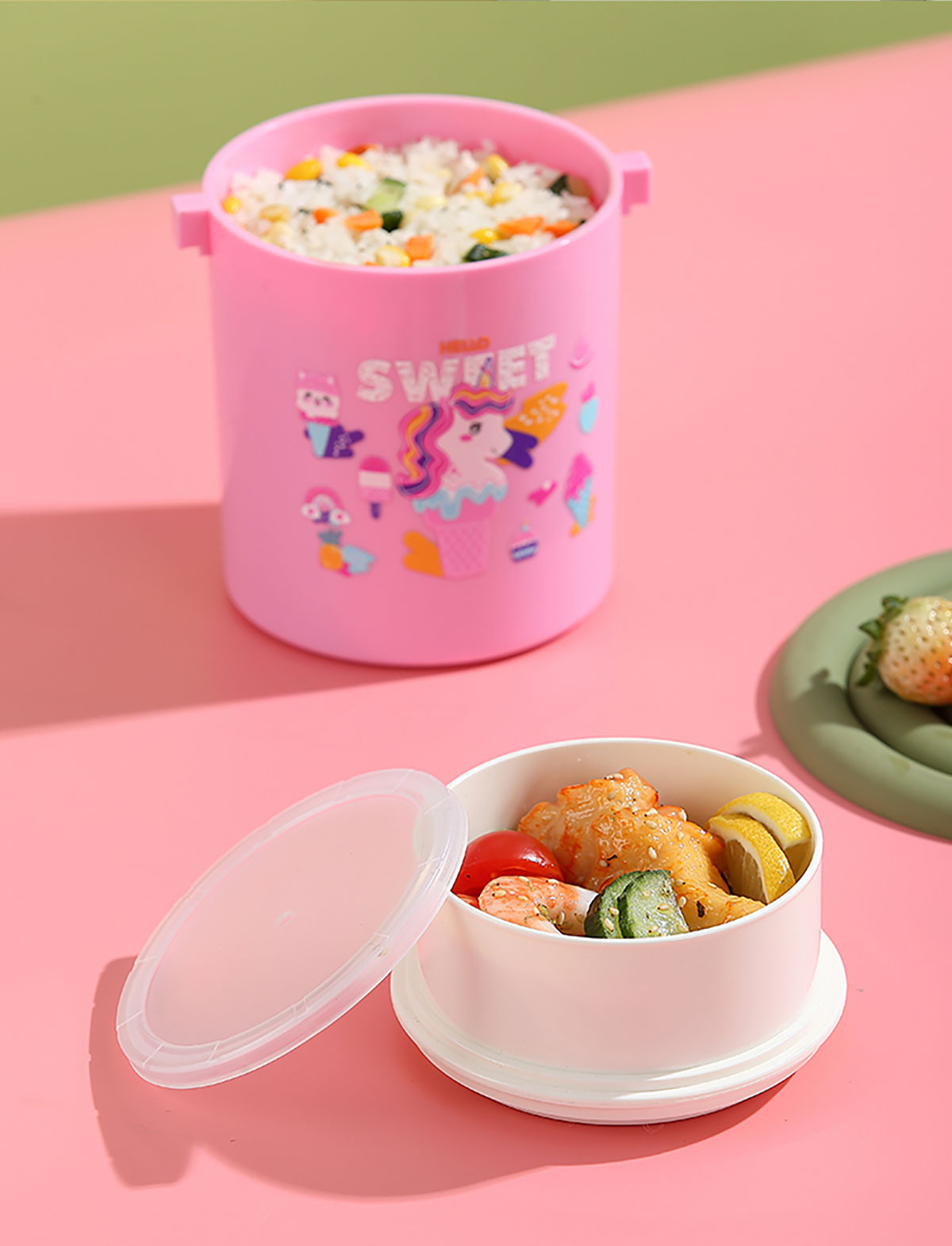 卡通雙層密封餐盒(圓錐形)900ml+PP勺