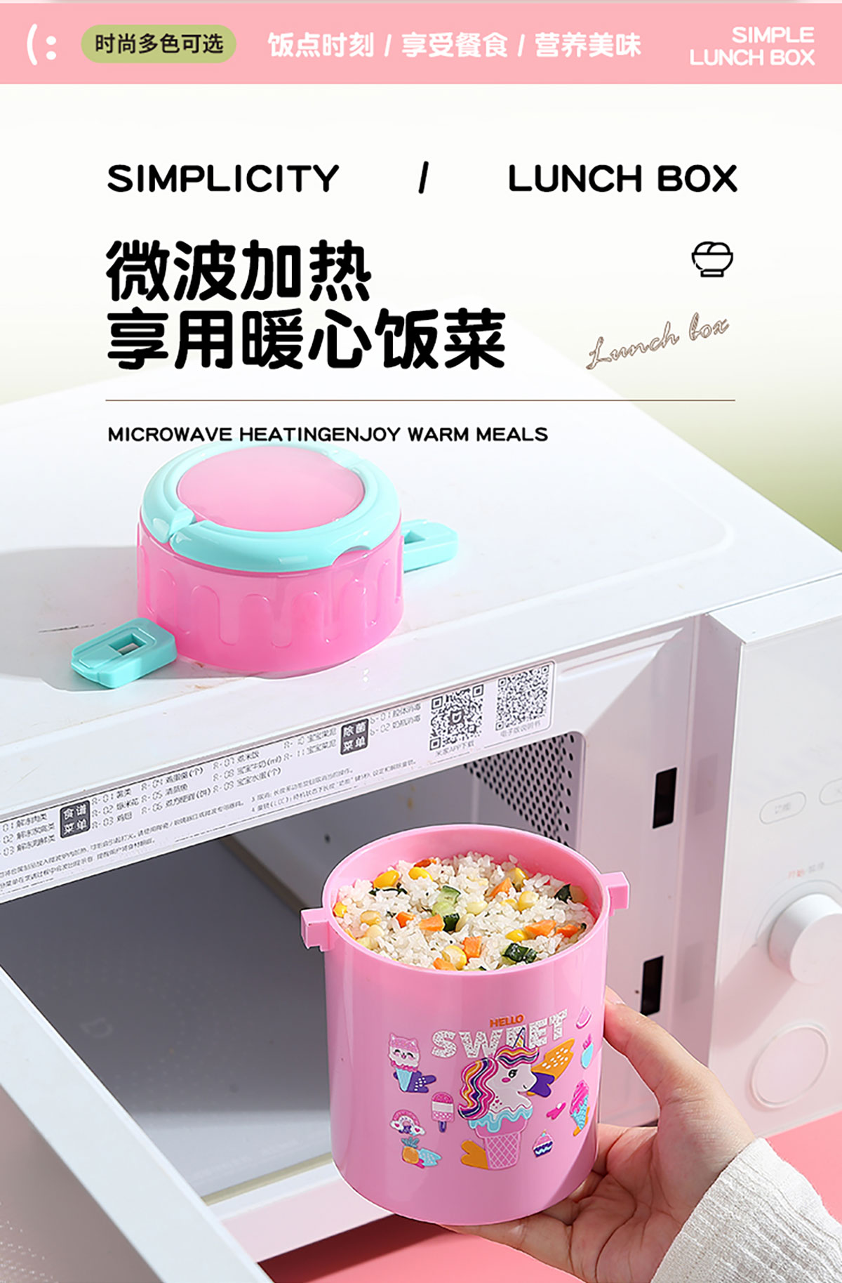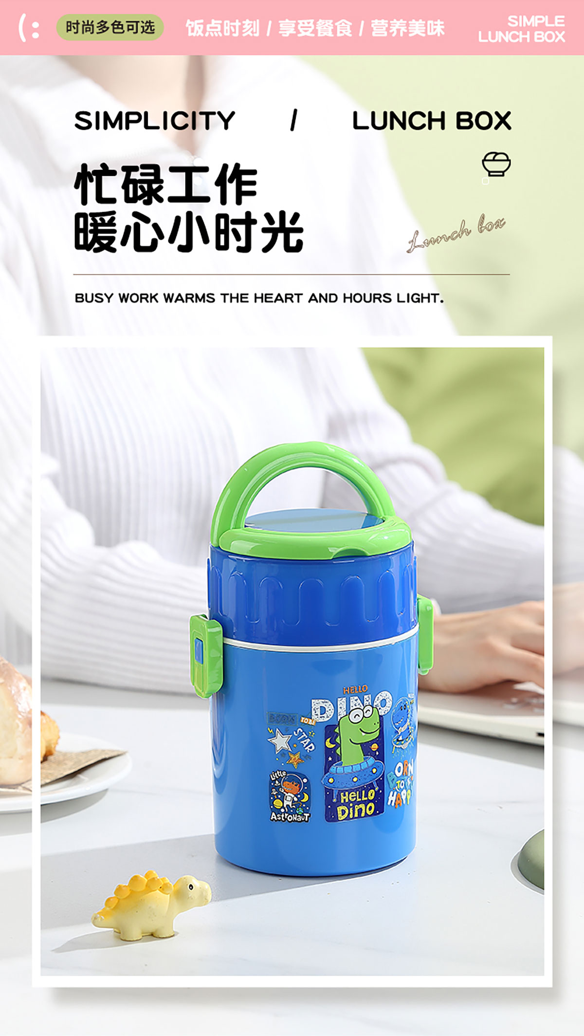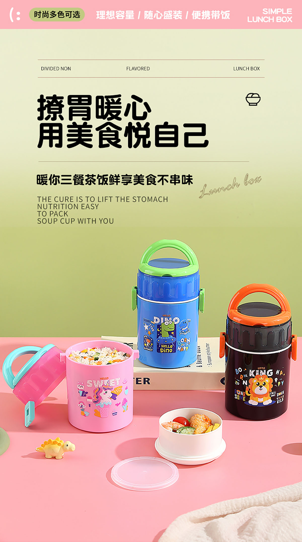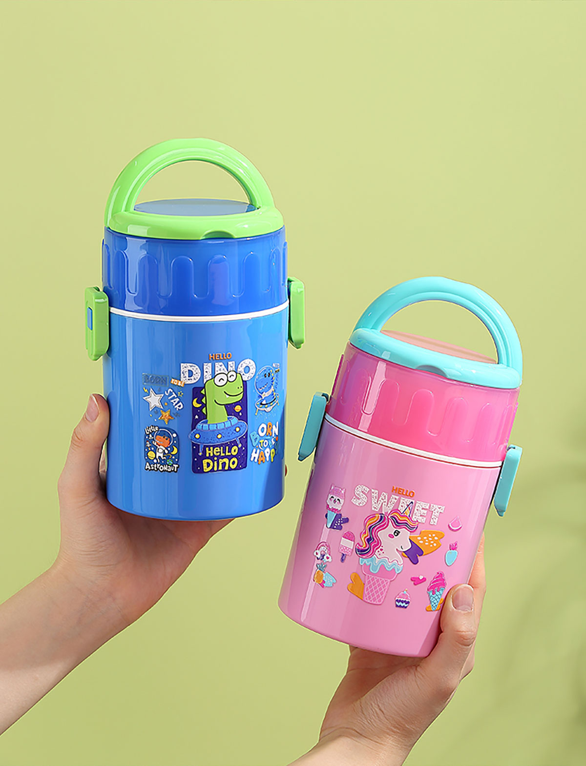 卡通雙層密封餐盒(圓錐形)900ml+PP勺
