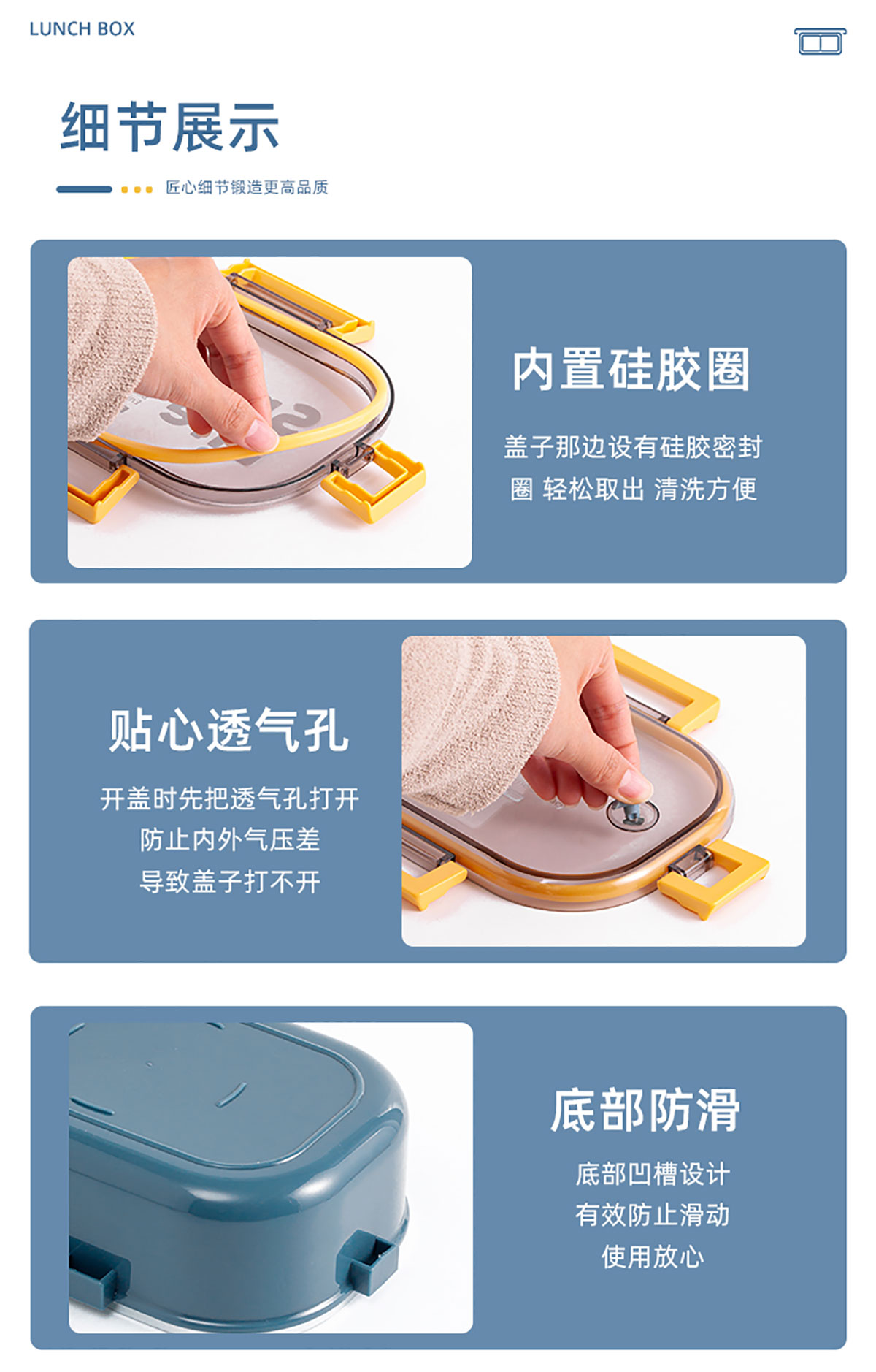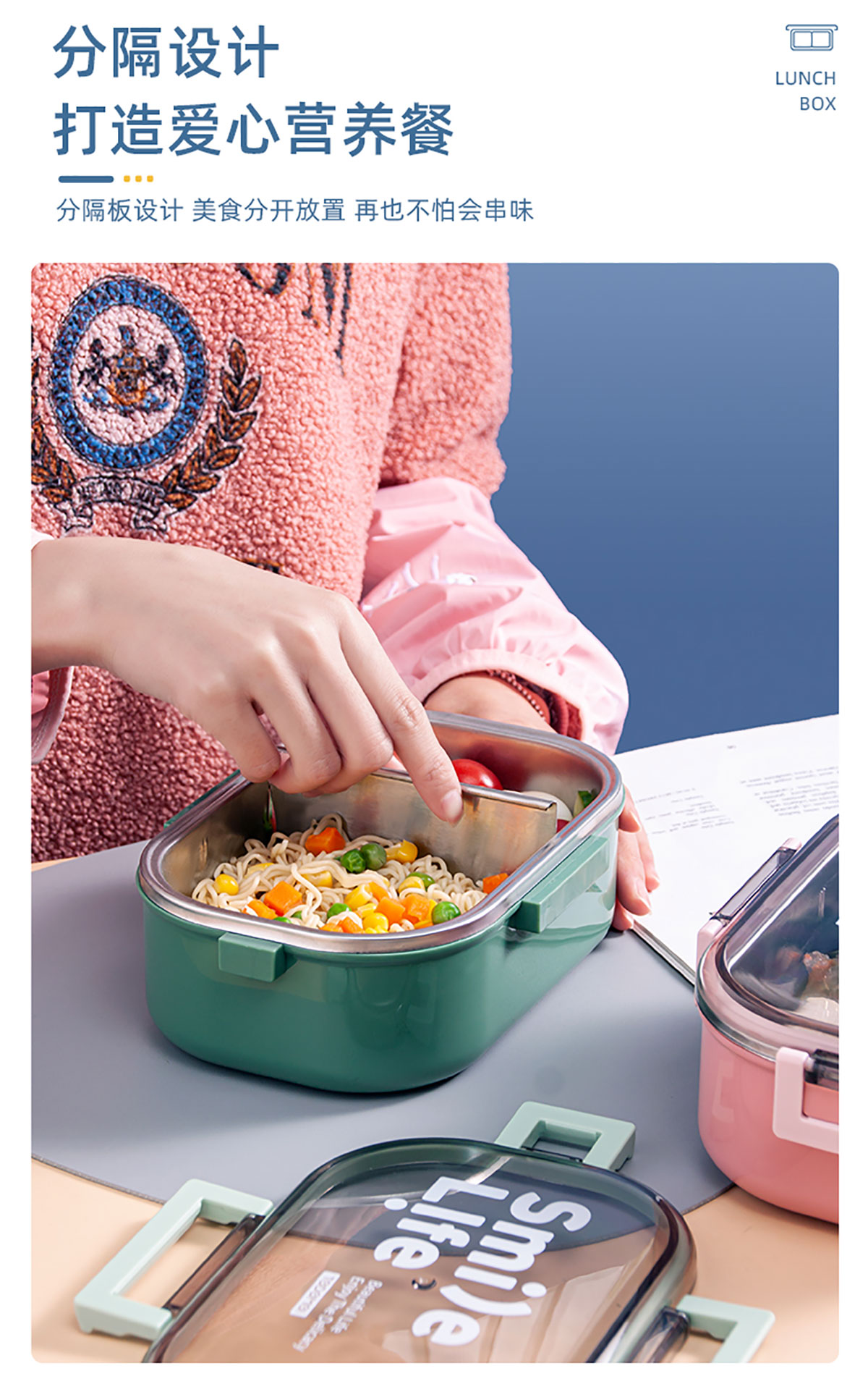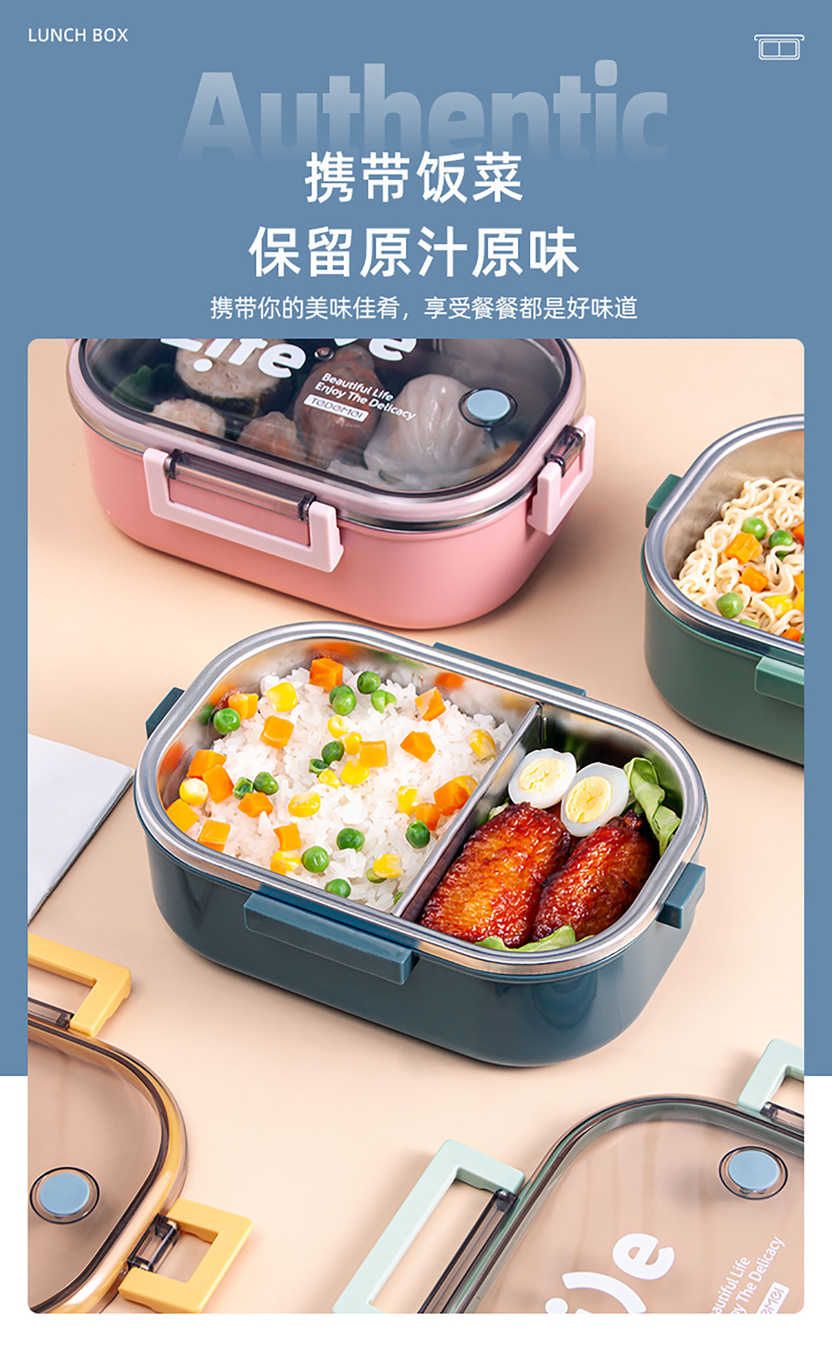 長方形分隔不銹鋼保溫飯盒(2020款新色)