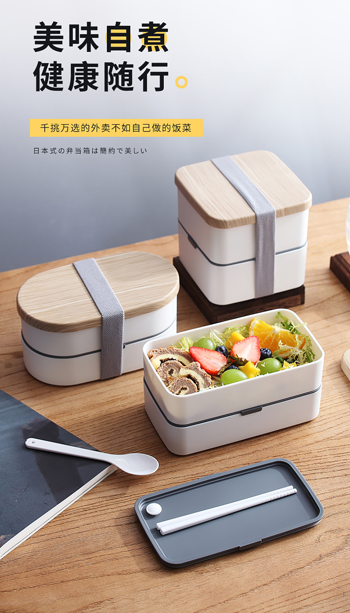 日式木紋便當盒長方950ml/圓900ml/正方1200ml