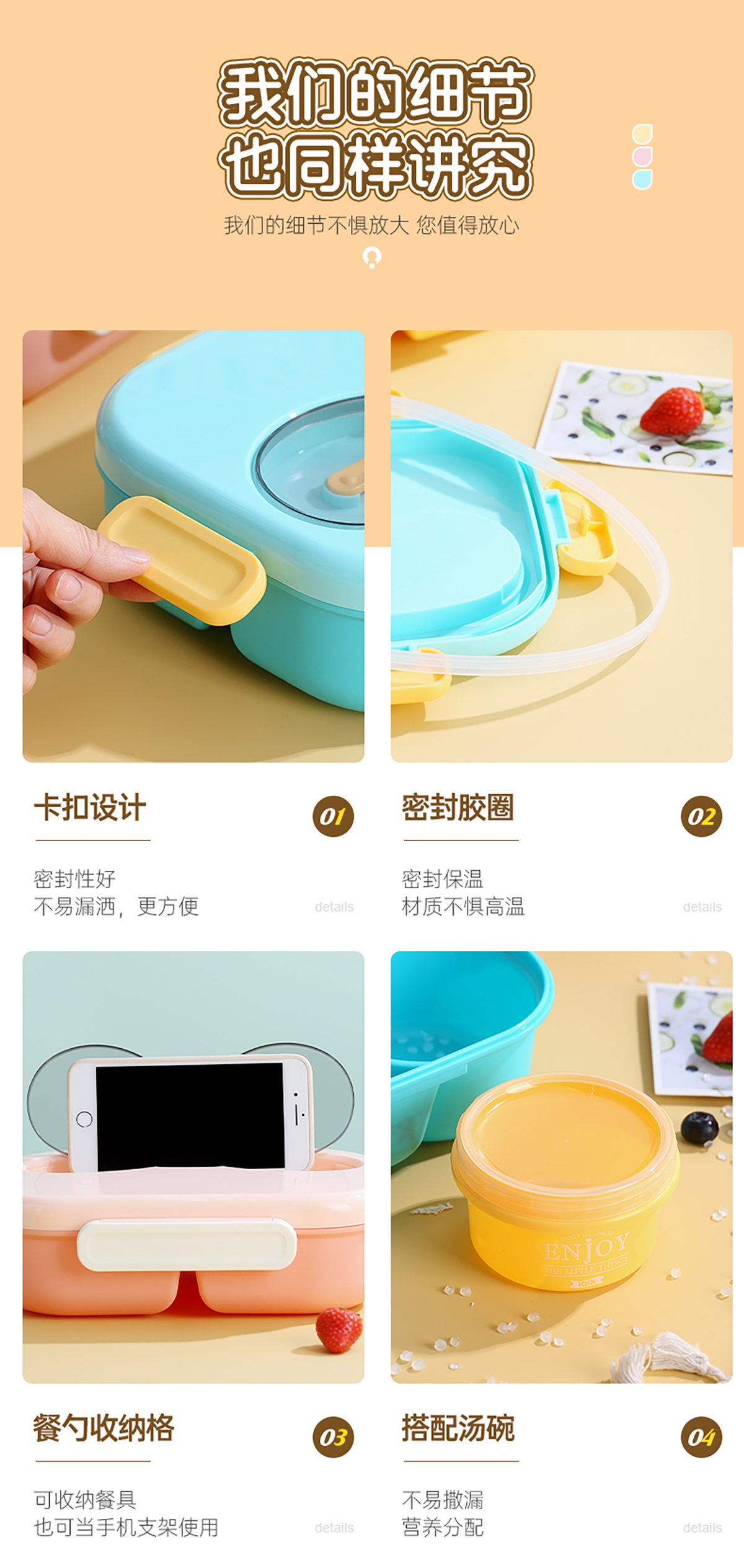 Size: AQX-2545(3格/1.2L):240*175*74mm