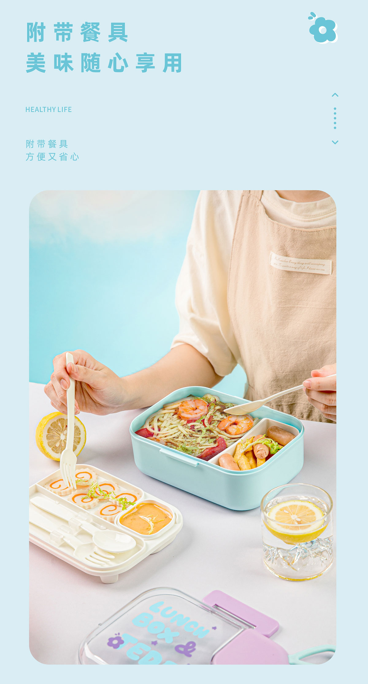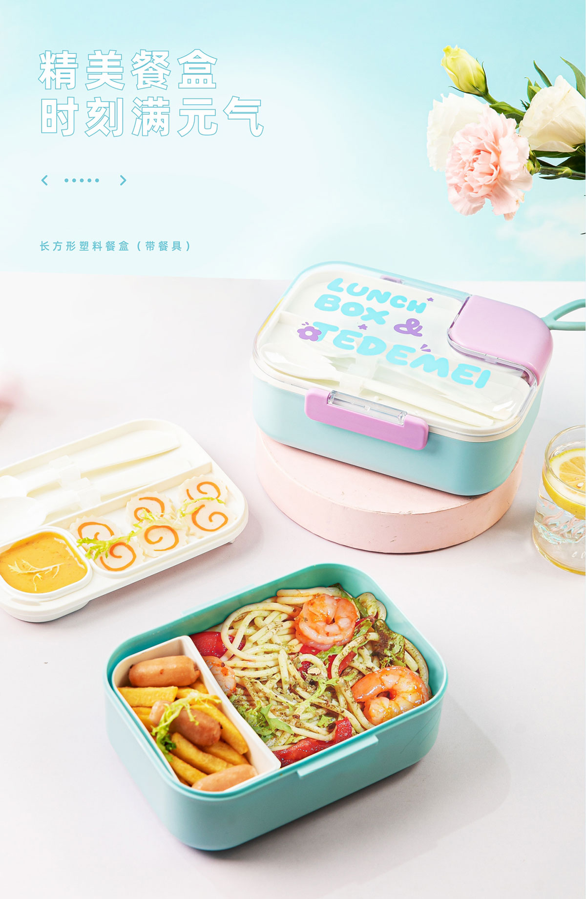 長方形塑料餐盒(帶餐具)