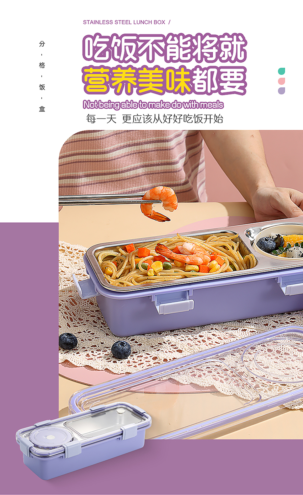 輕食不銹鋼餐盒兩格帶碗600ml+150ml