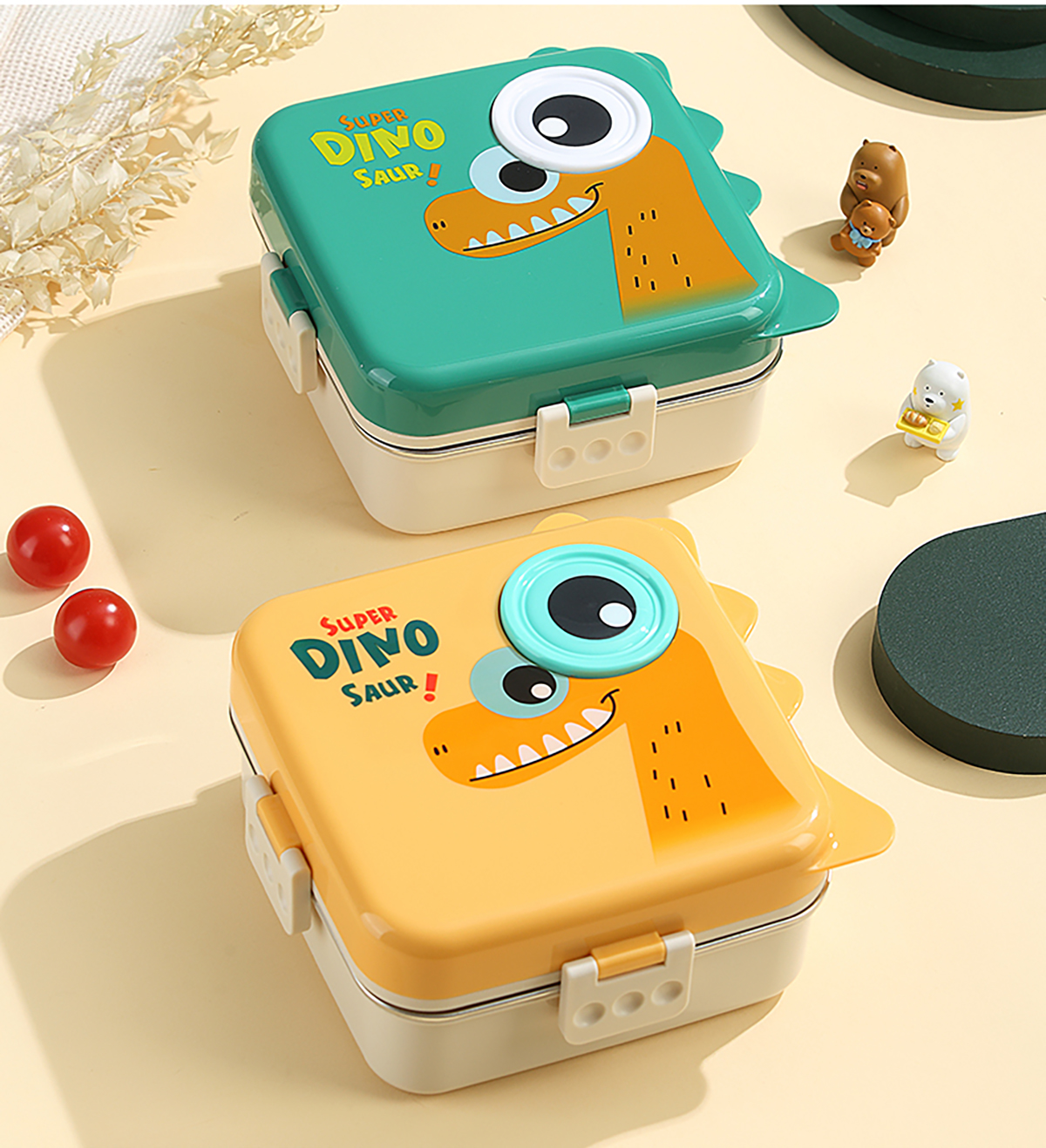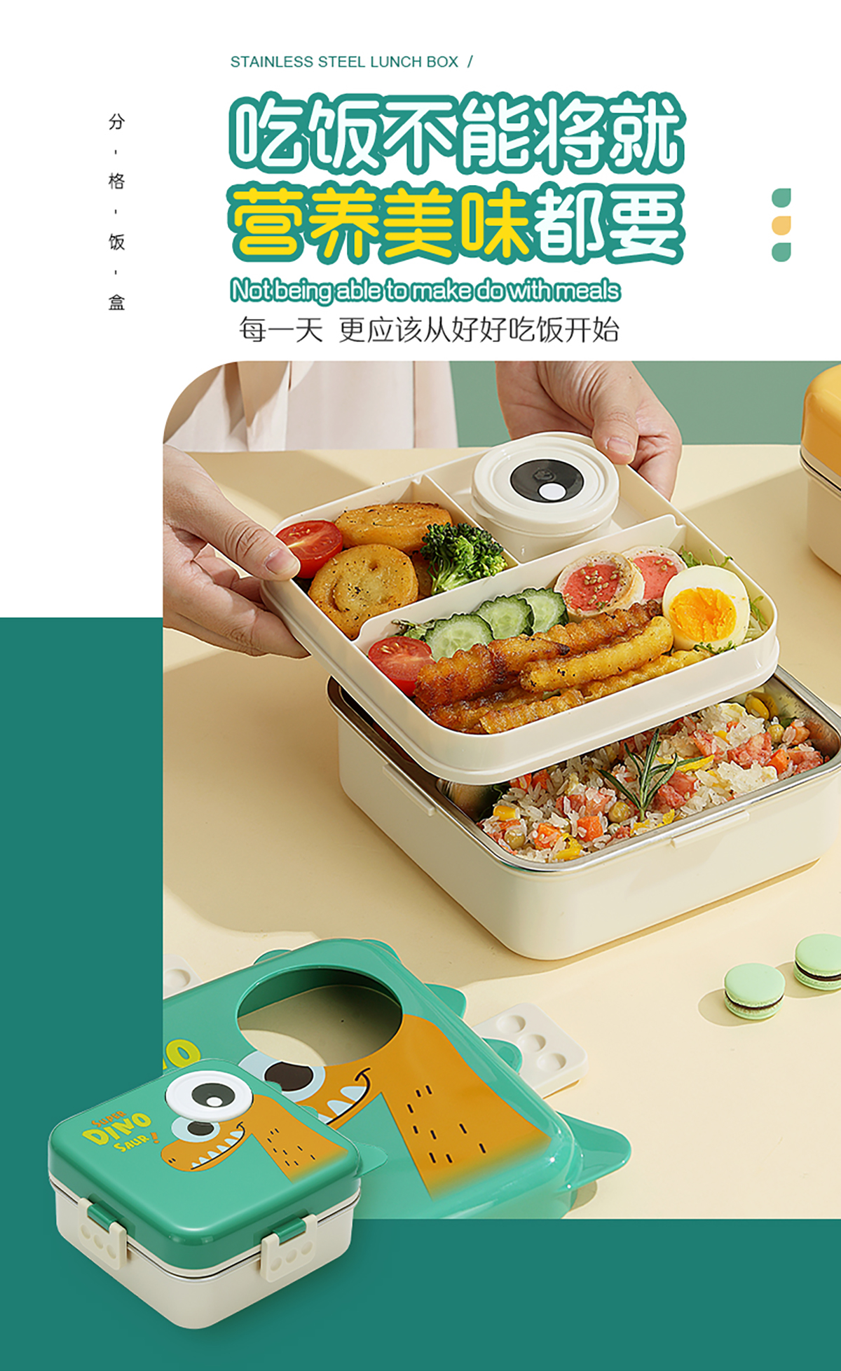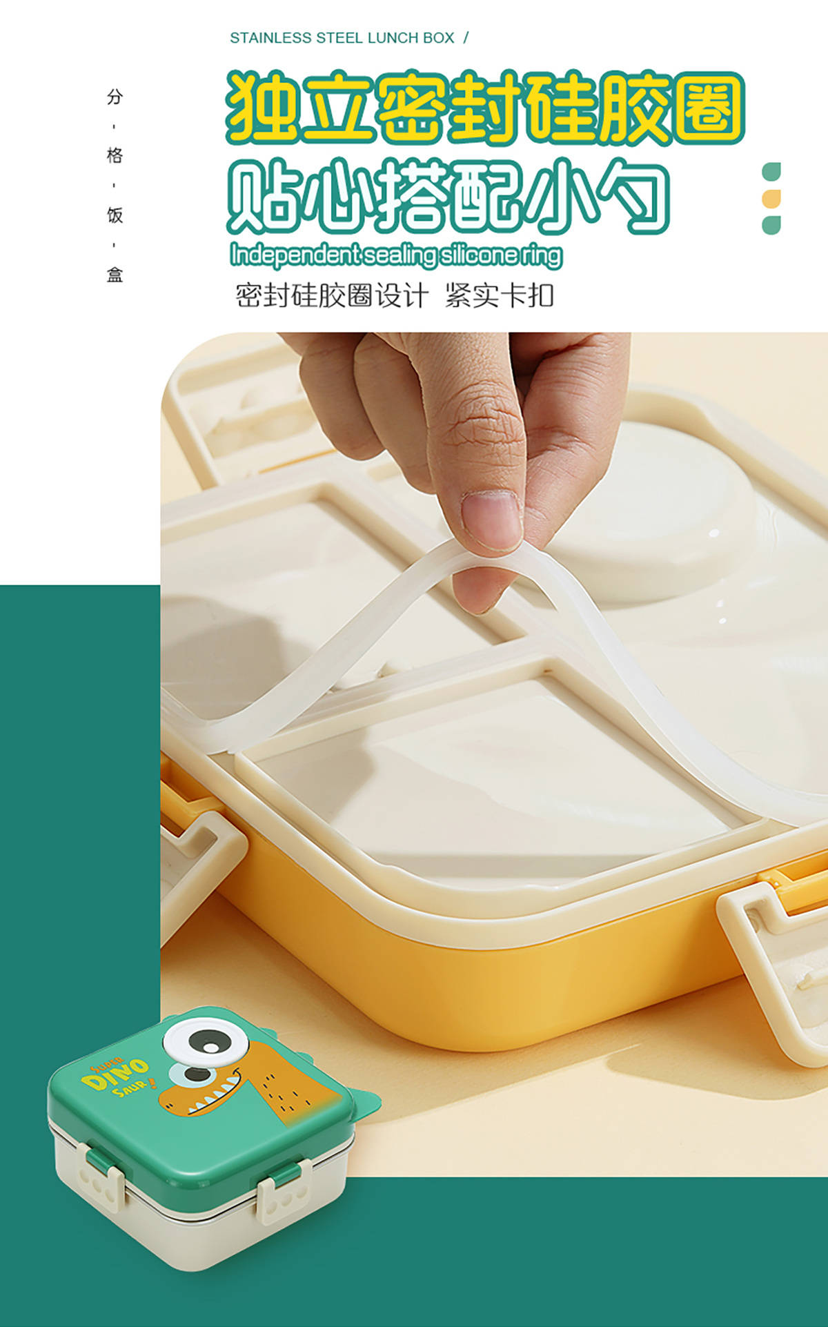 恐龍正方形不銹鋼飯盒1120ml+70ml