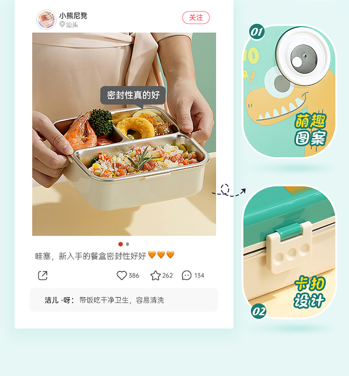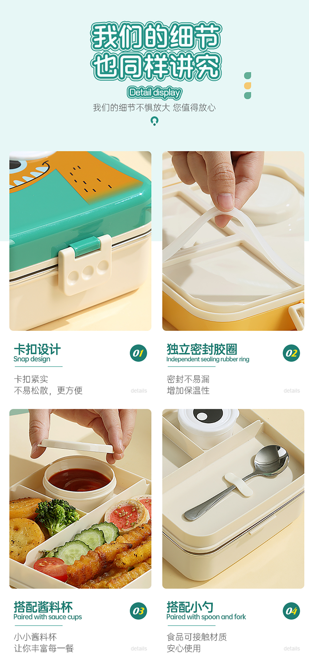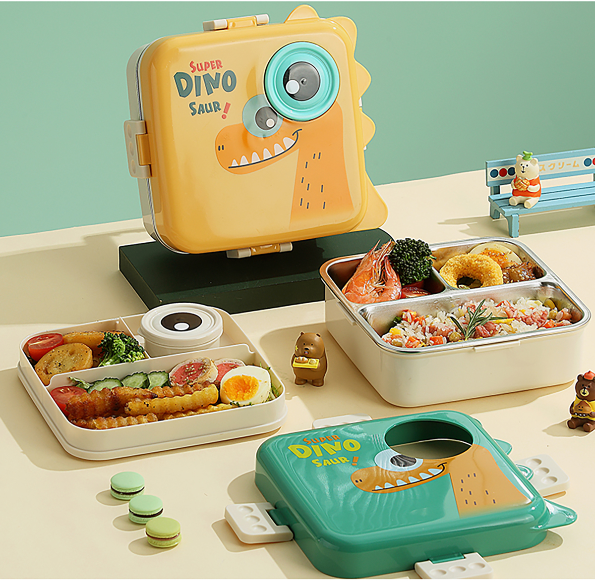 恐龍正方形不銹鋼飯盒1120ml+70ml