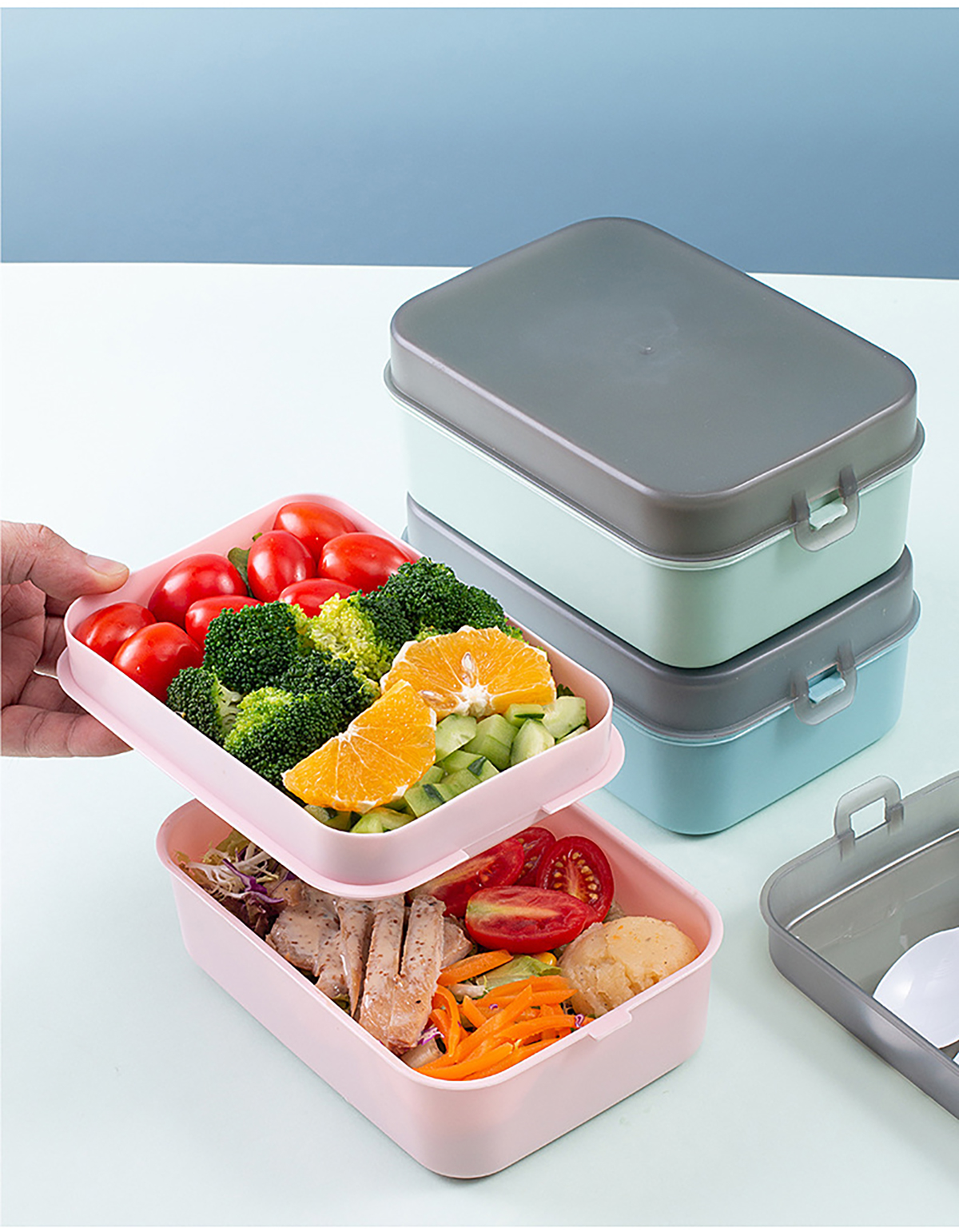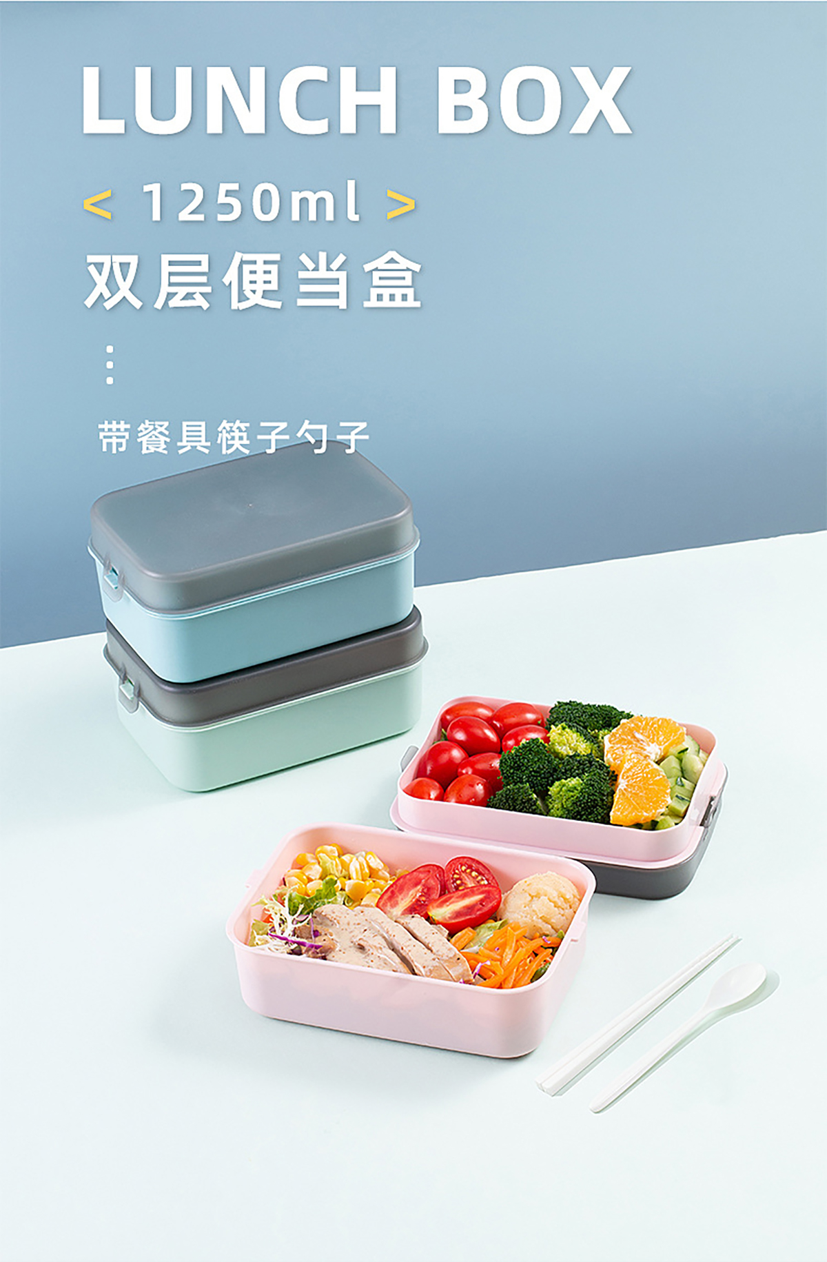 簡易分隔餐盒上層450ml+下層800ml