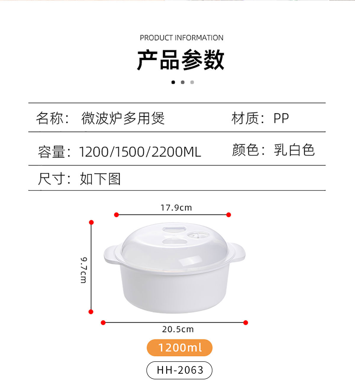 大號(hào)/中號(hào)/小號(hào)微波湯鍋