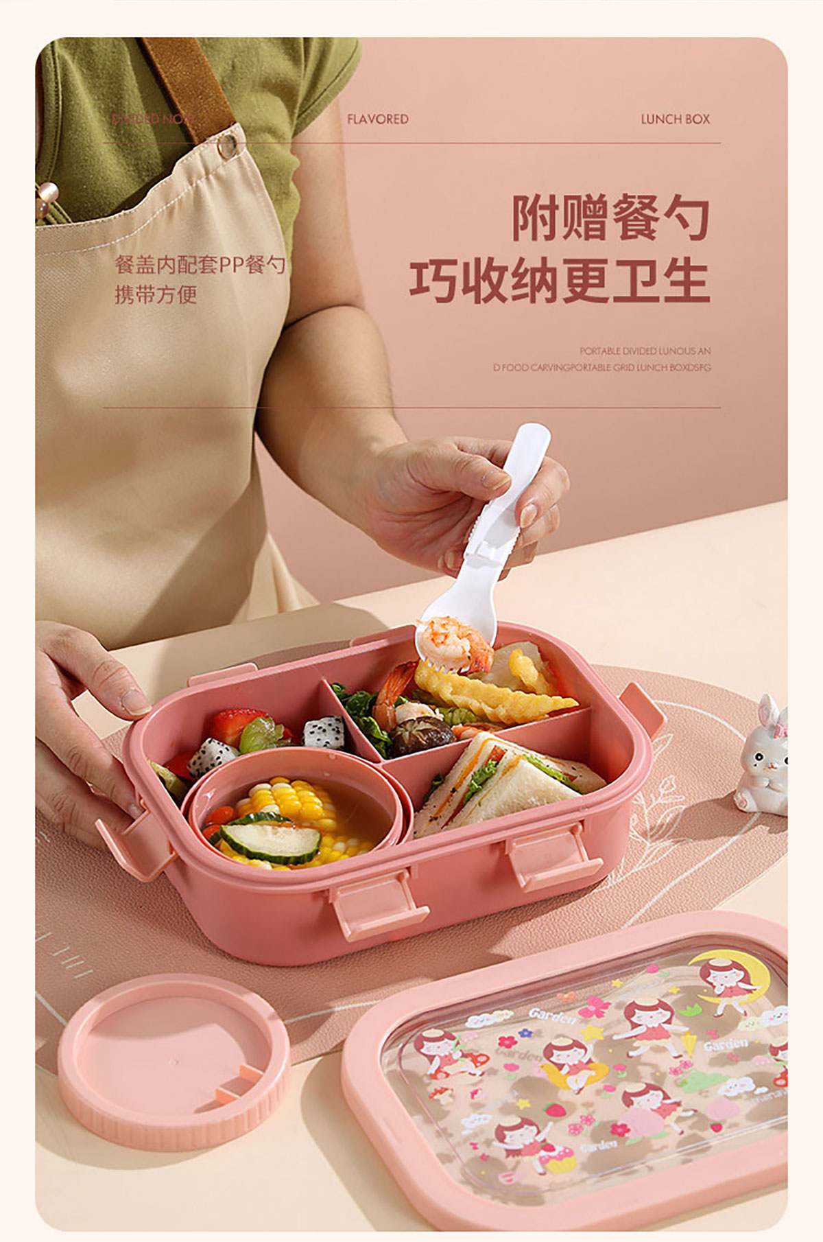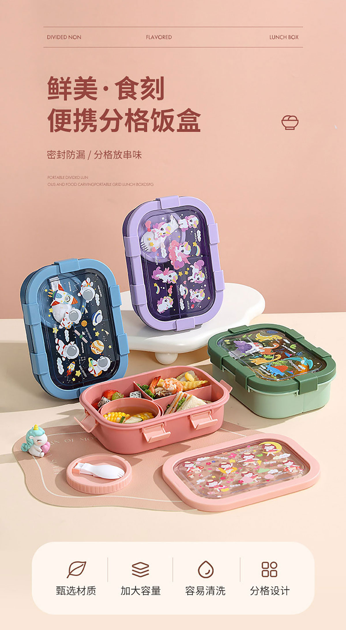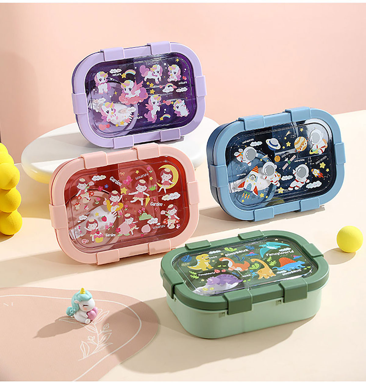 卡通分格飯盒(塑料四格)