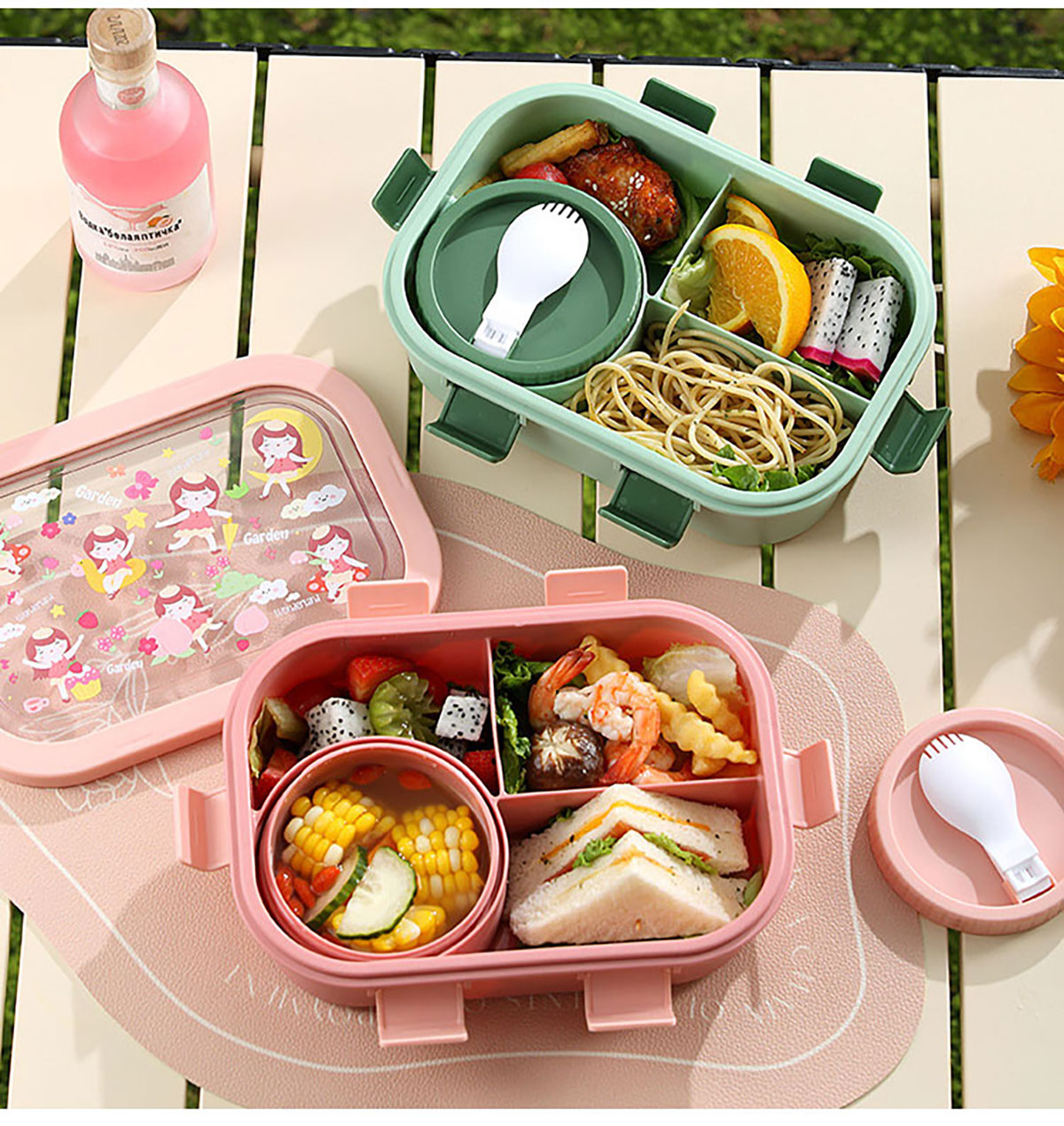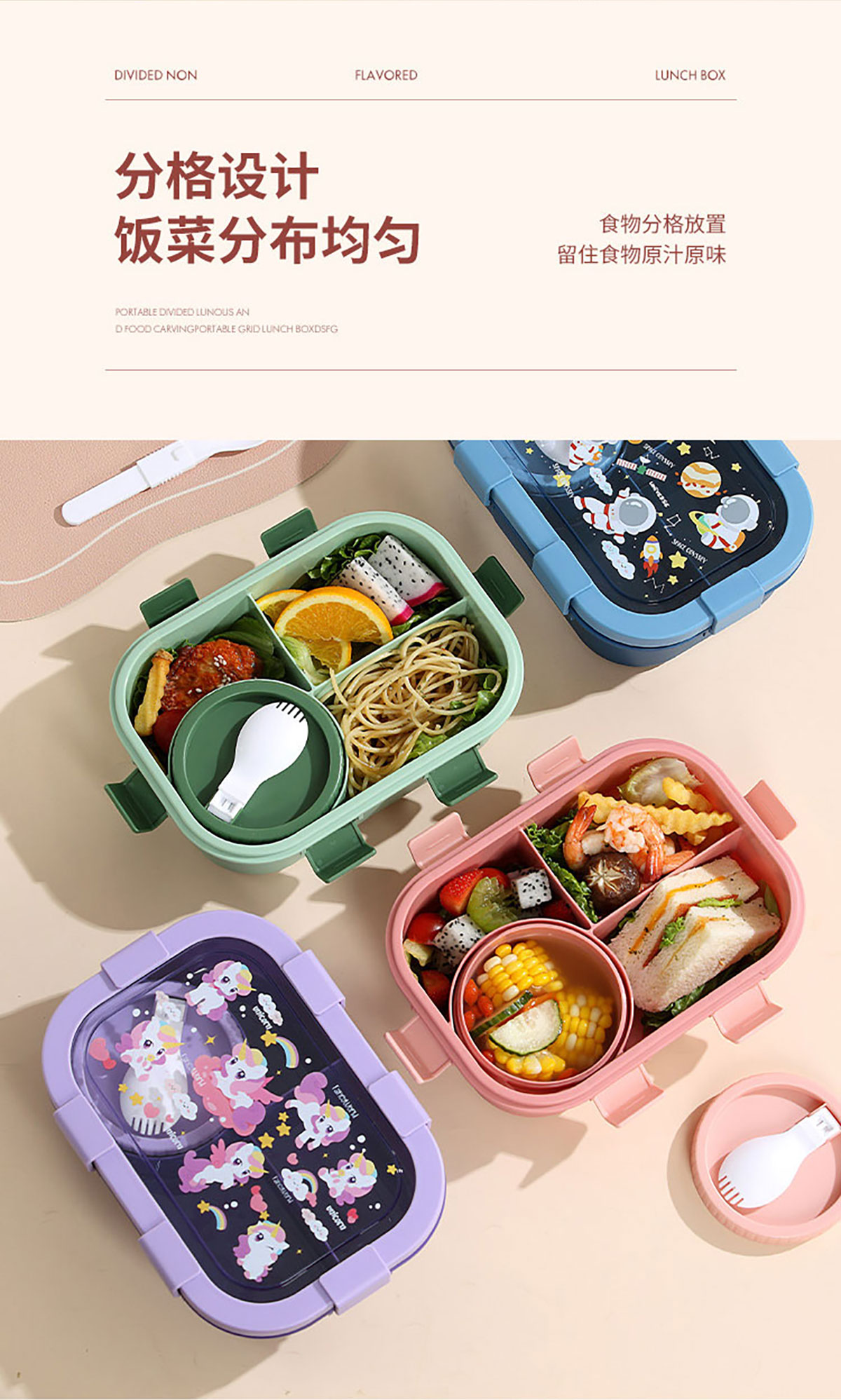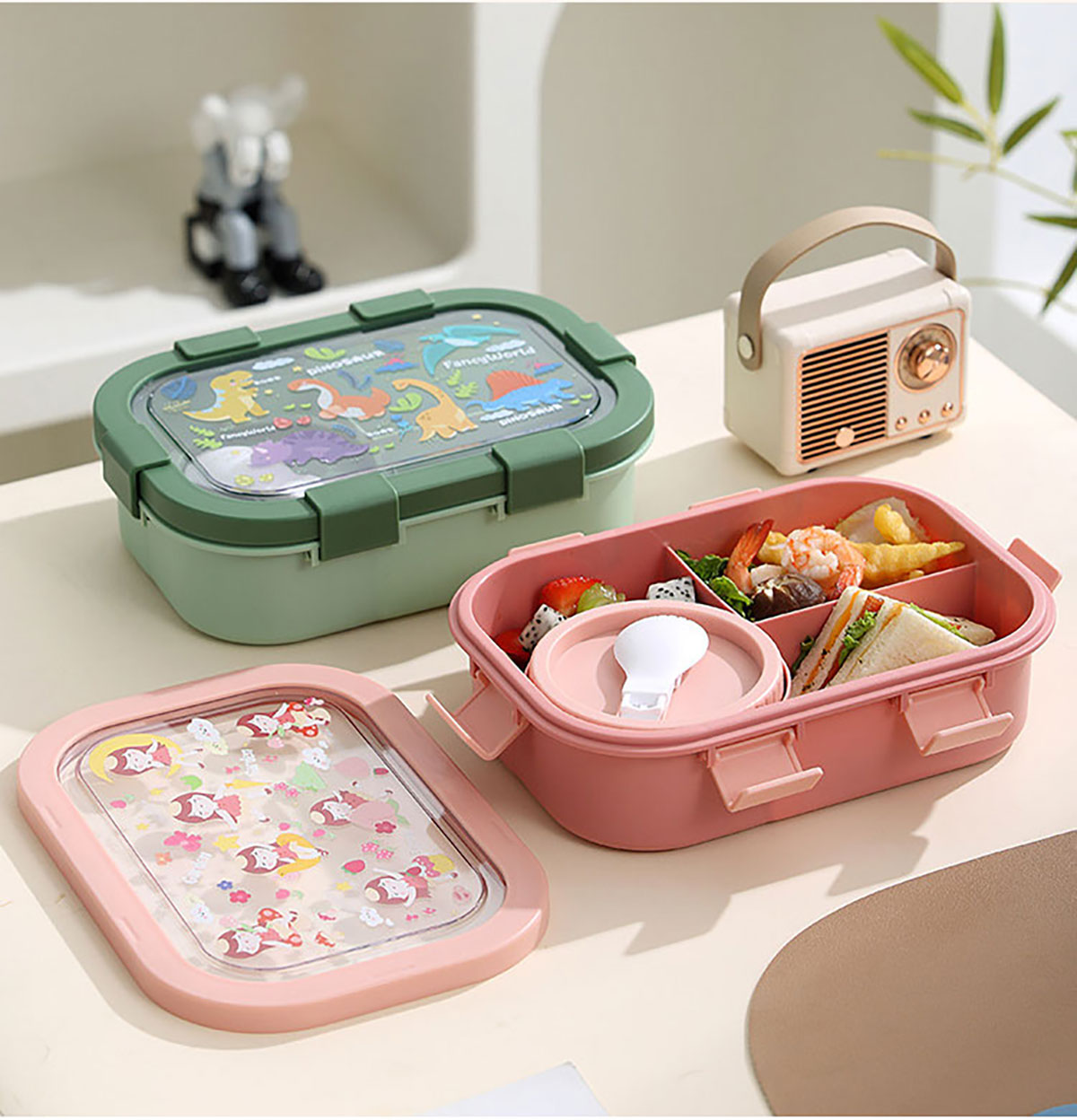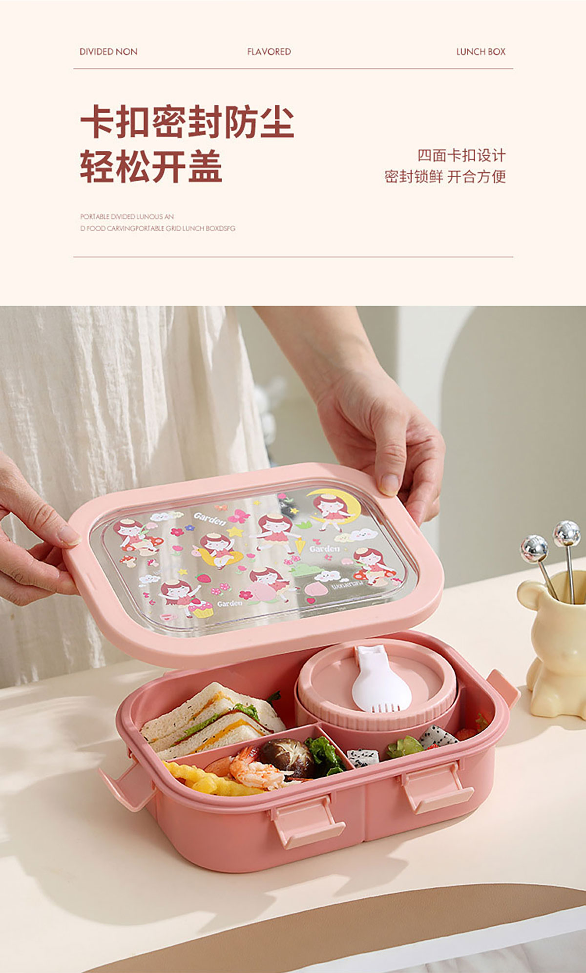 卡通分格飯盒(塑料四格)