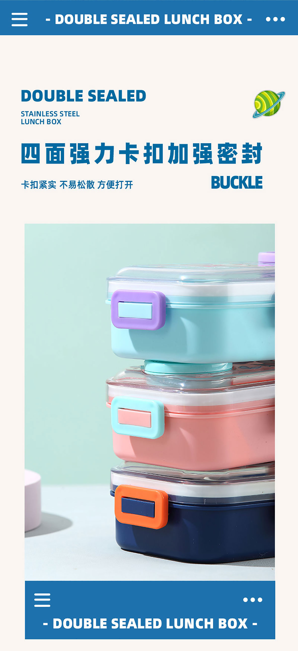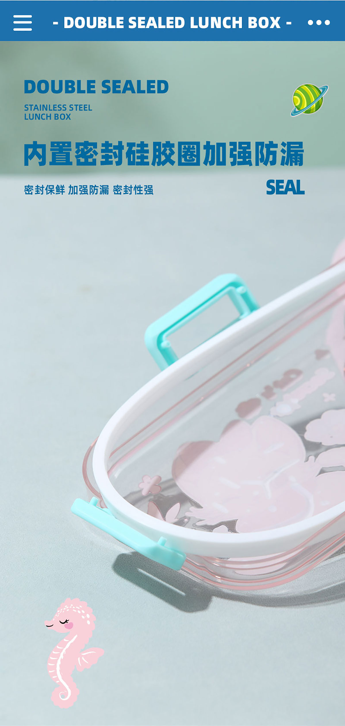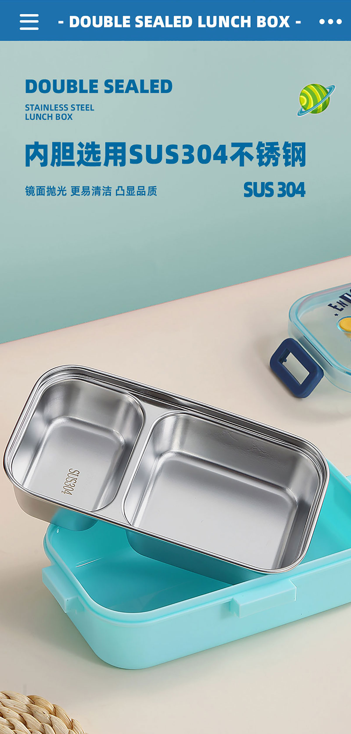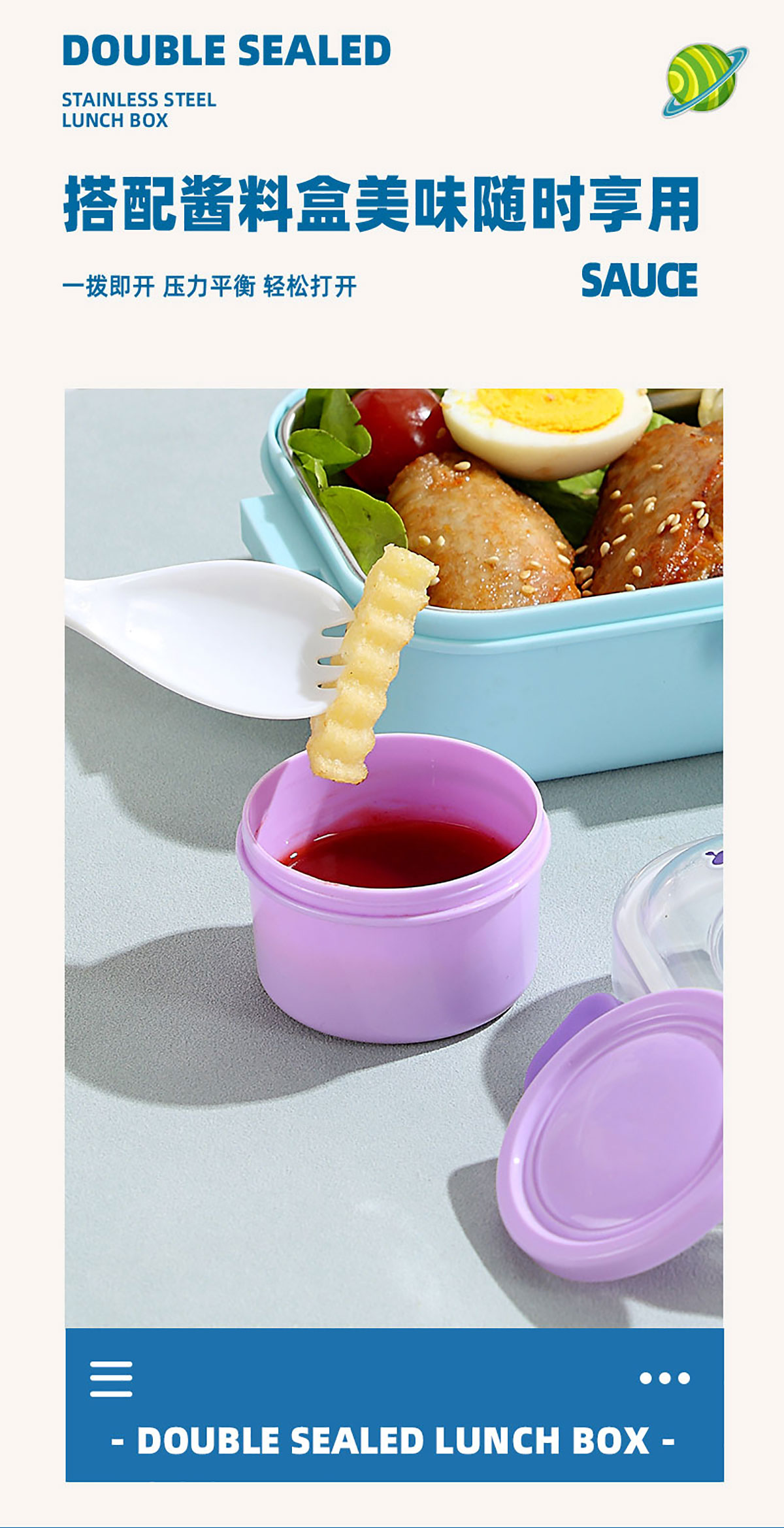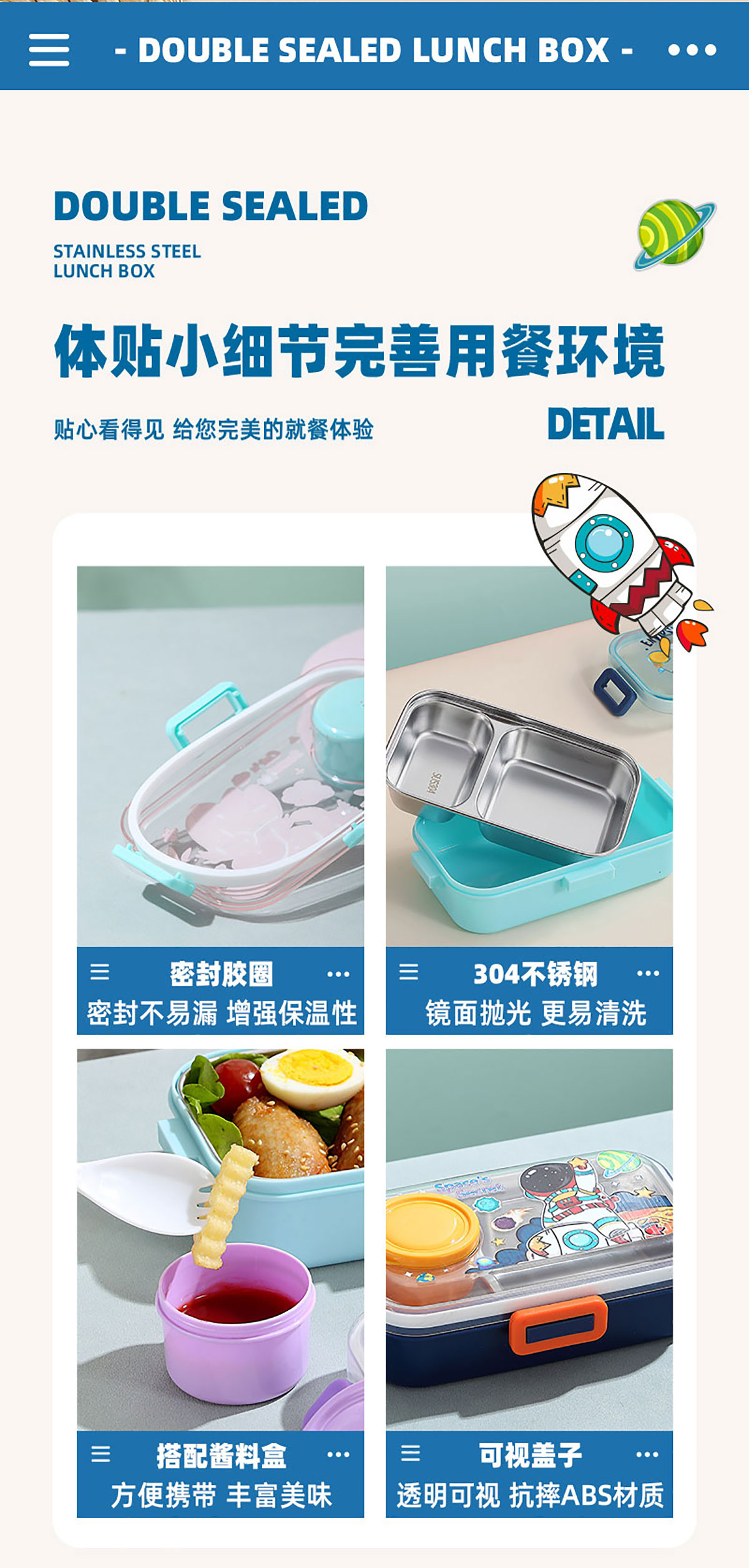 彩光卡通不銹鋼餐盒(二格700ml+外置醬料杯80ml)