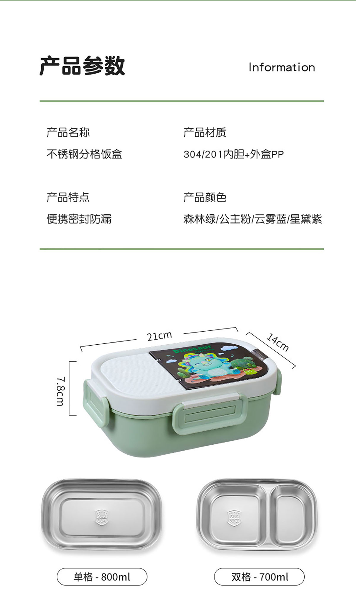 201/304內(nèi)膽單格/雙格飯盒