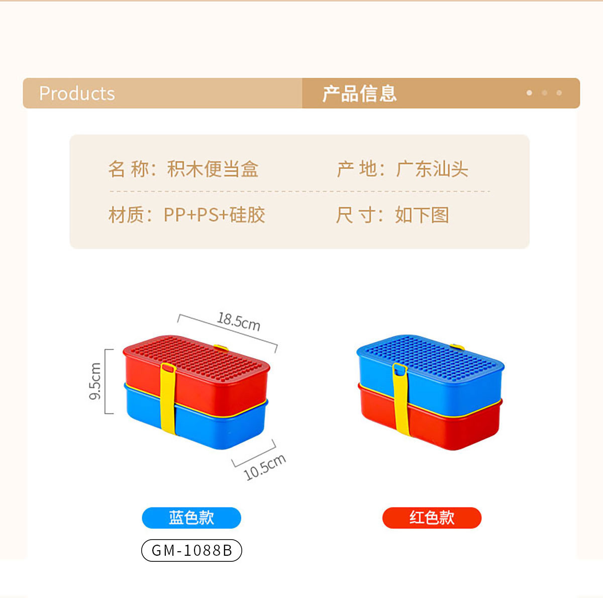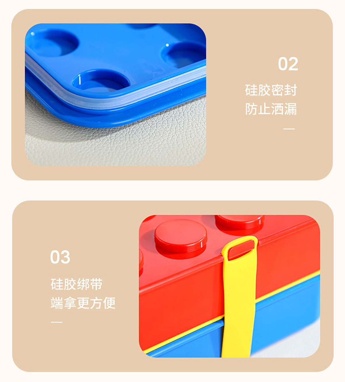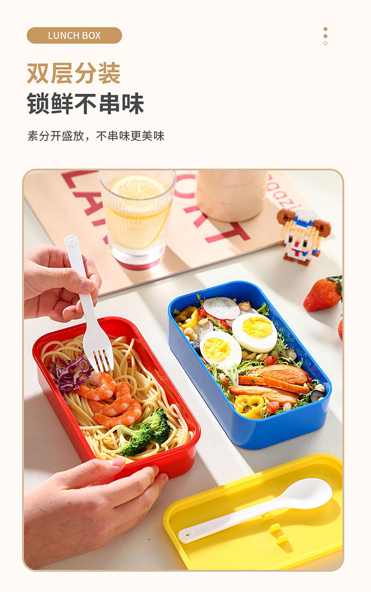 積木雙層綁帶飯盒A款/B款(配叉+勺)1100ml