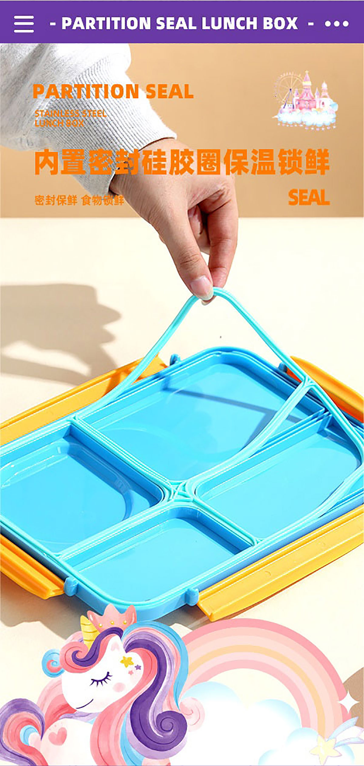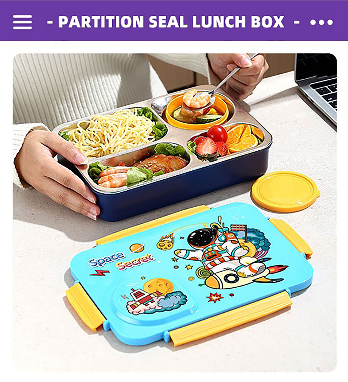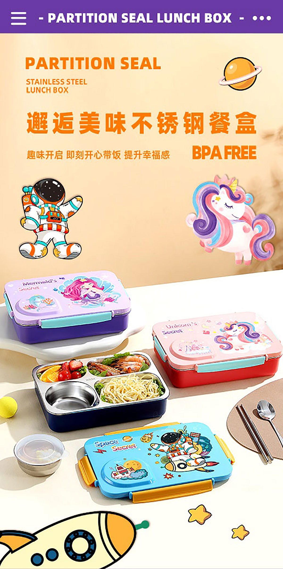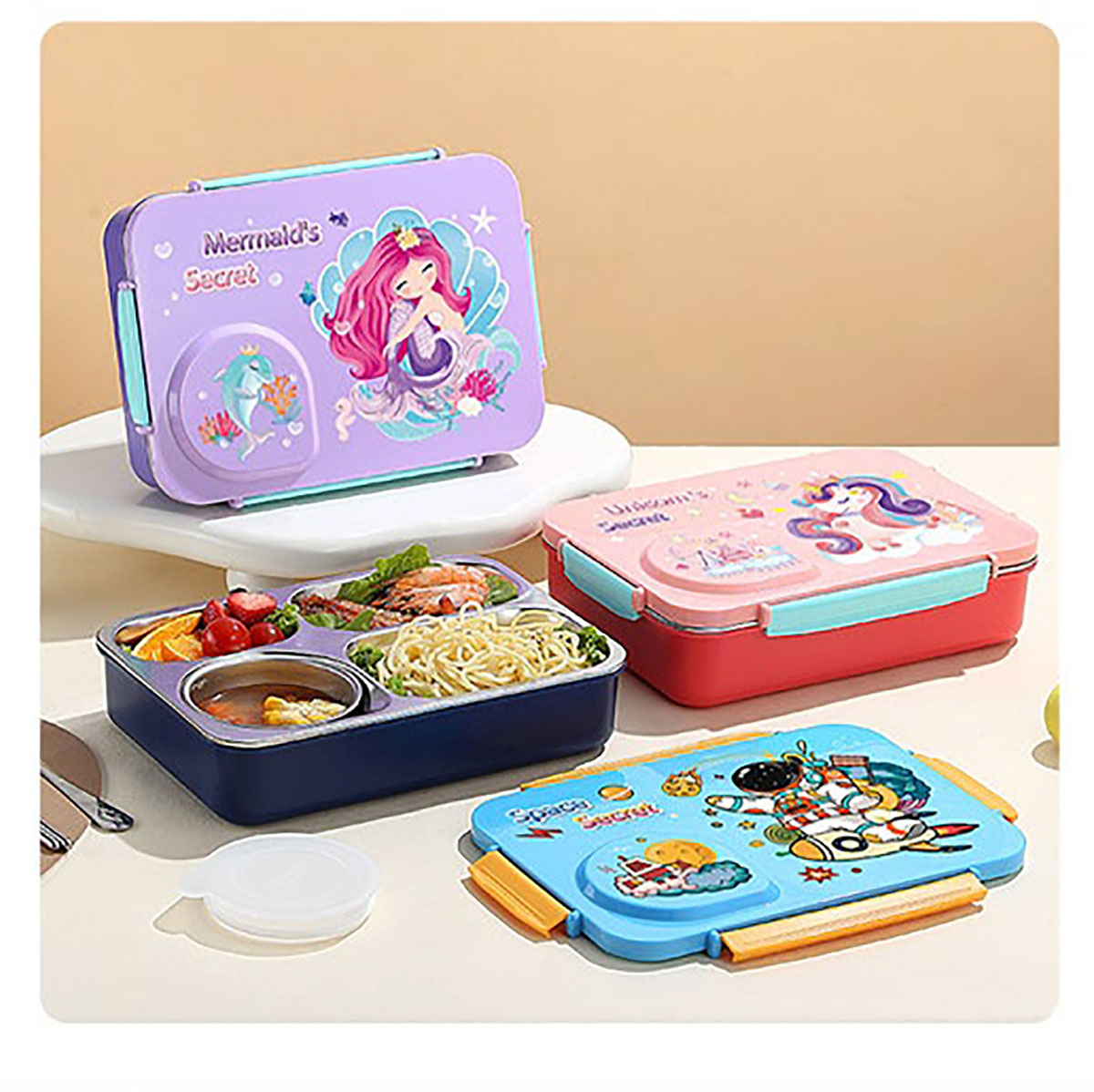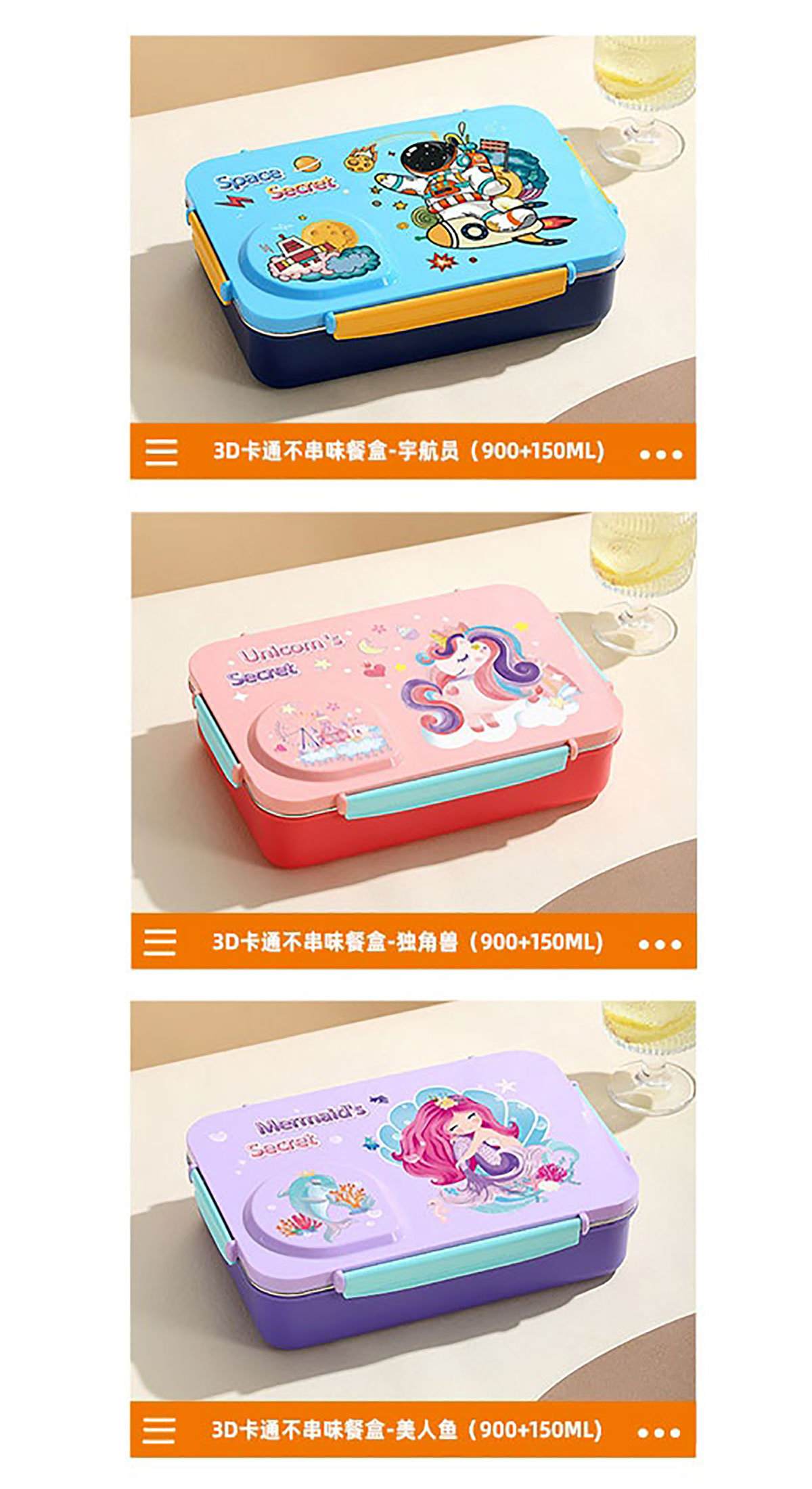 3D卡通不串味餐盒(不銹鋼4格900ml+塑料碗/不銹鋼碗150ml+不銹鋼勺筷)