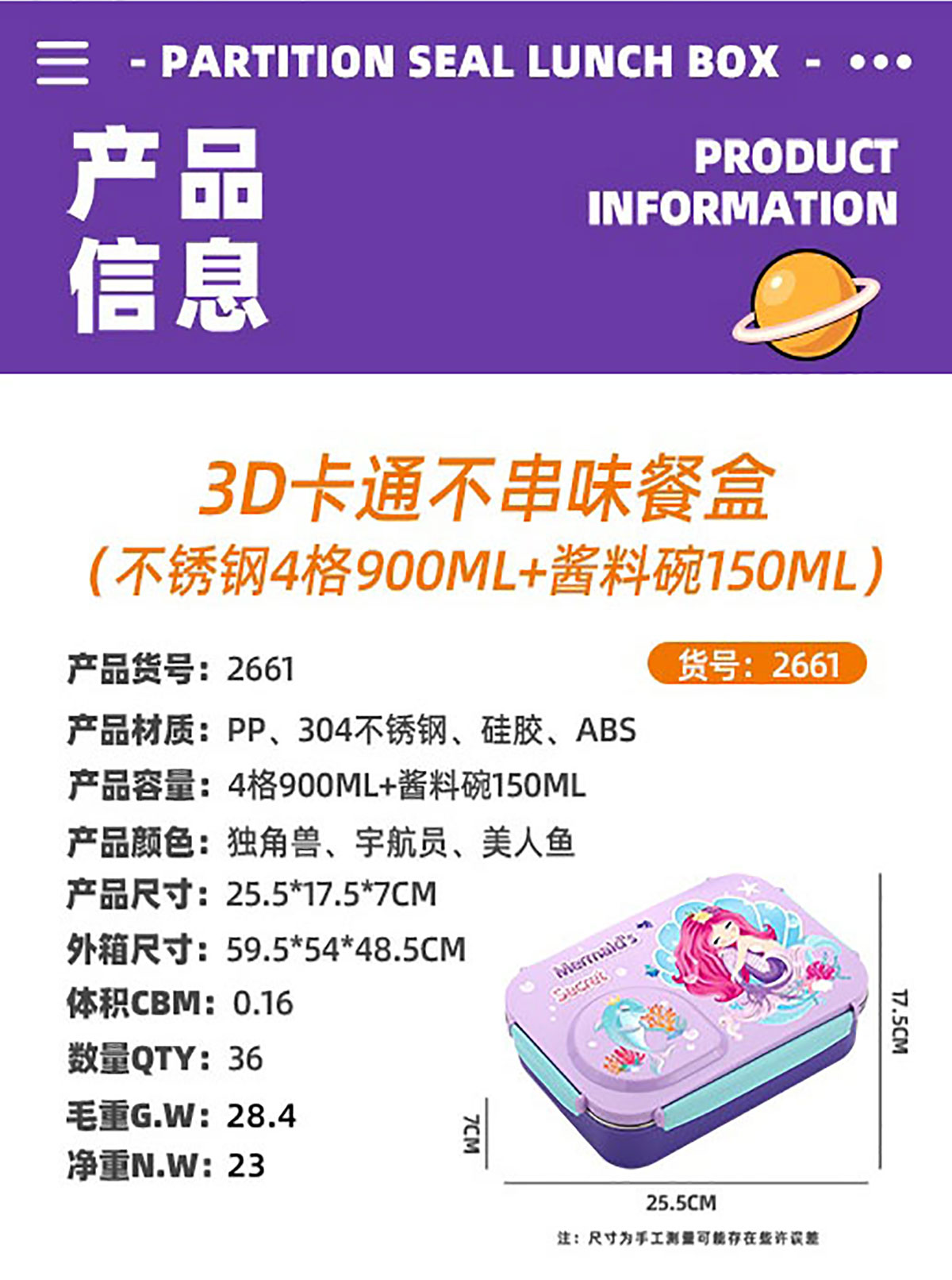 Size: AQX-2661:255*175*70mm+塑料碗150ml