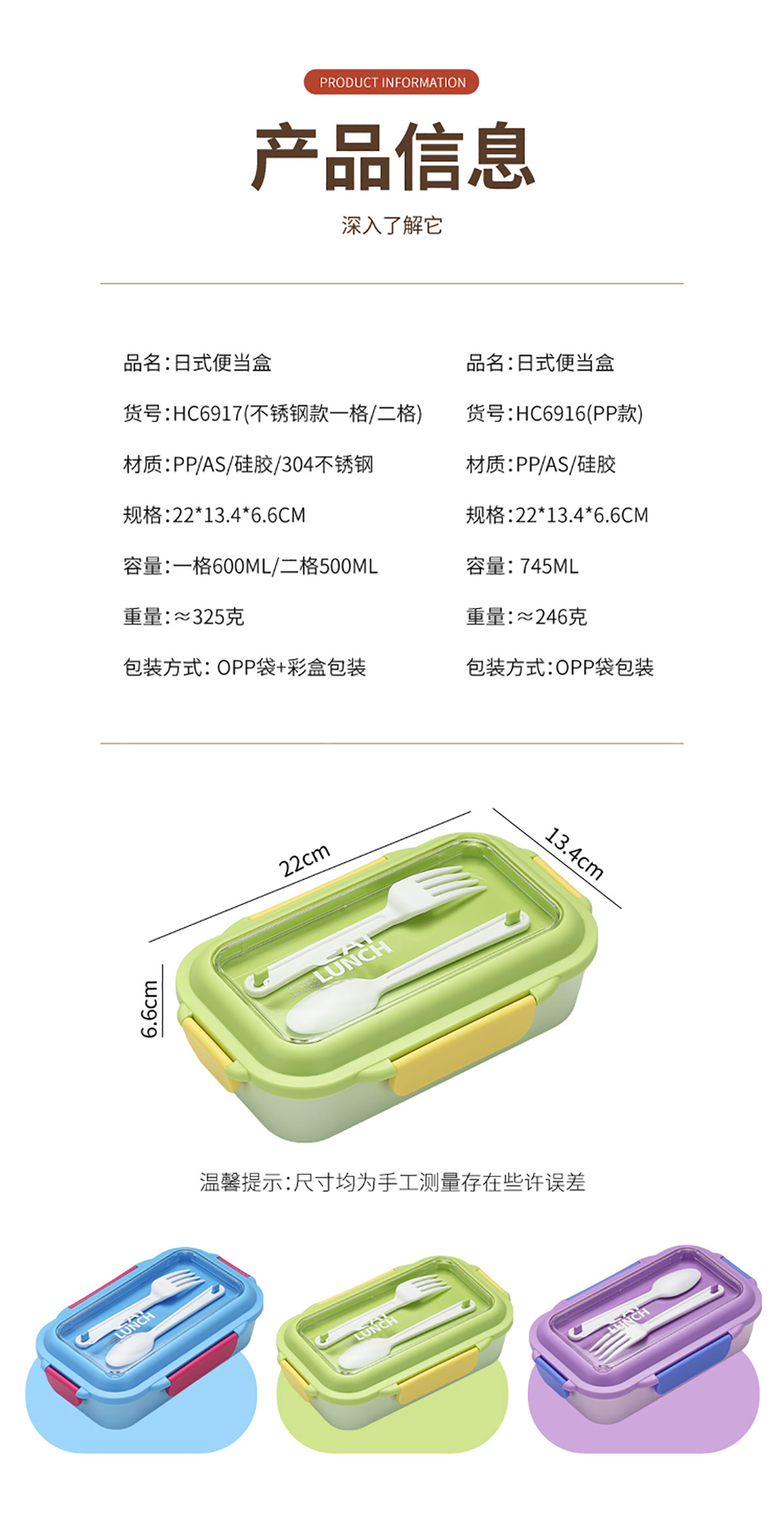 Size: SWY-HC6916(PP款二格):220*134*66mm/745ml