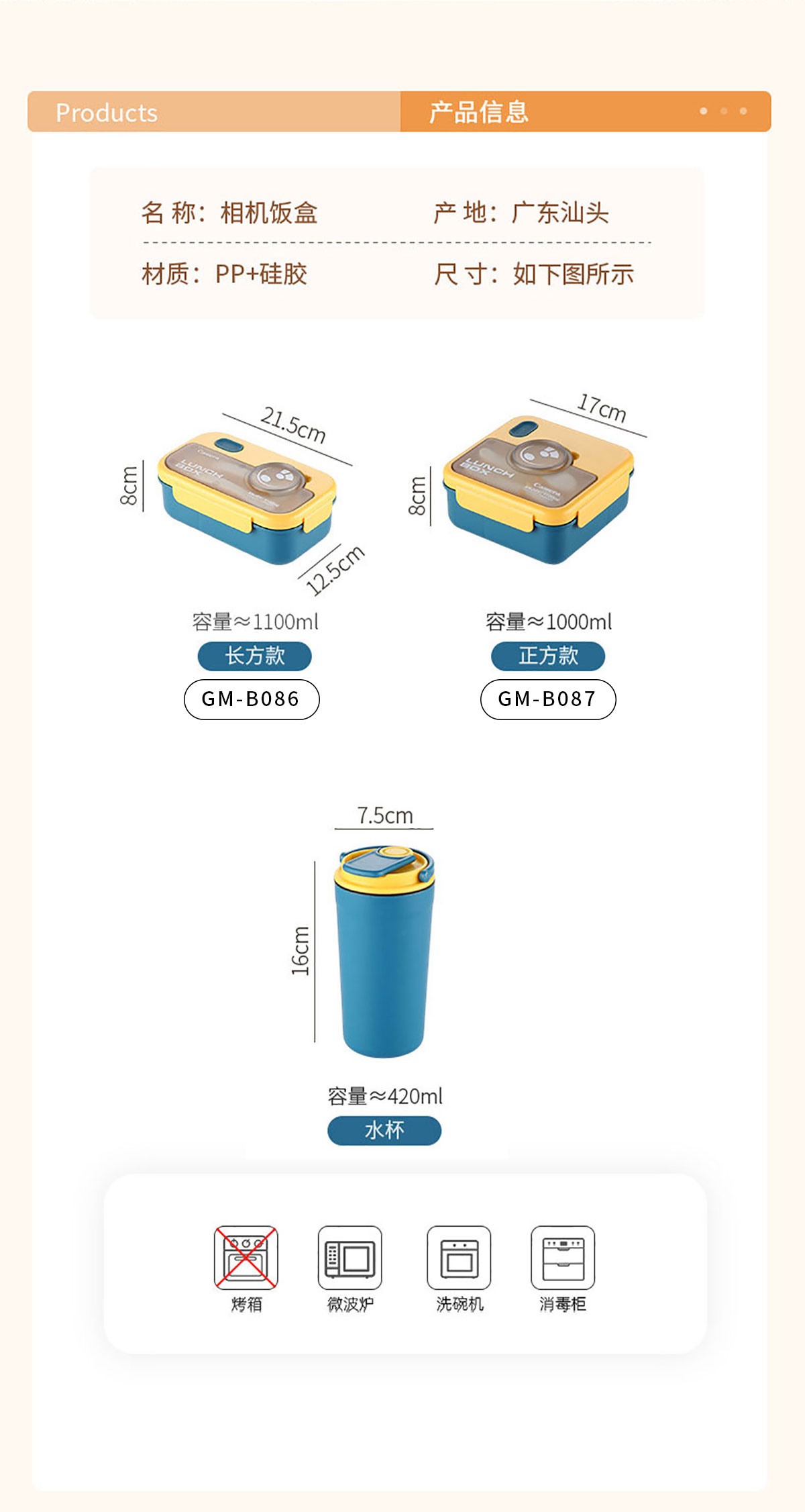 Size: GM-B086(長(zhǎng)方):215*125*80mm/1100ml