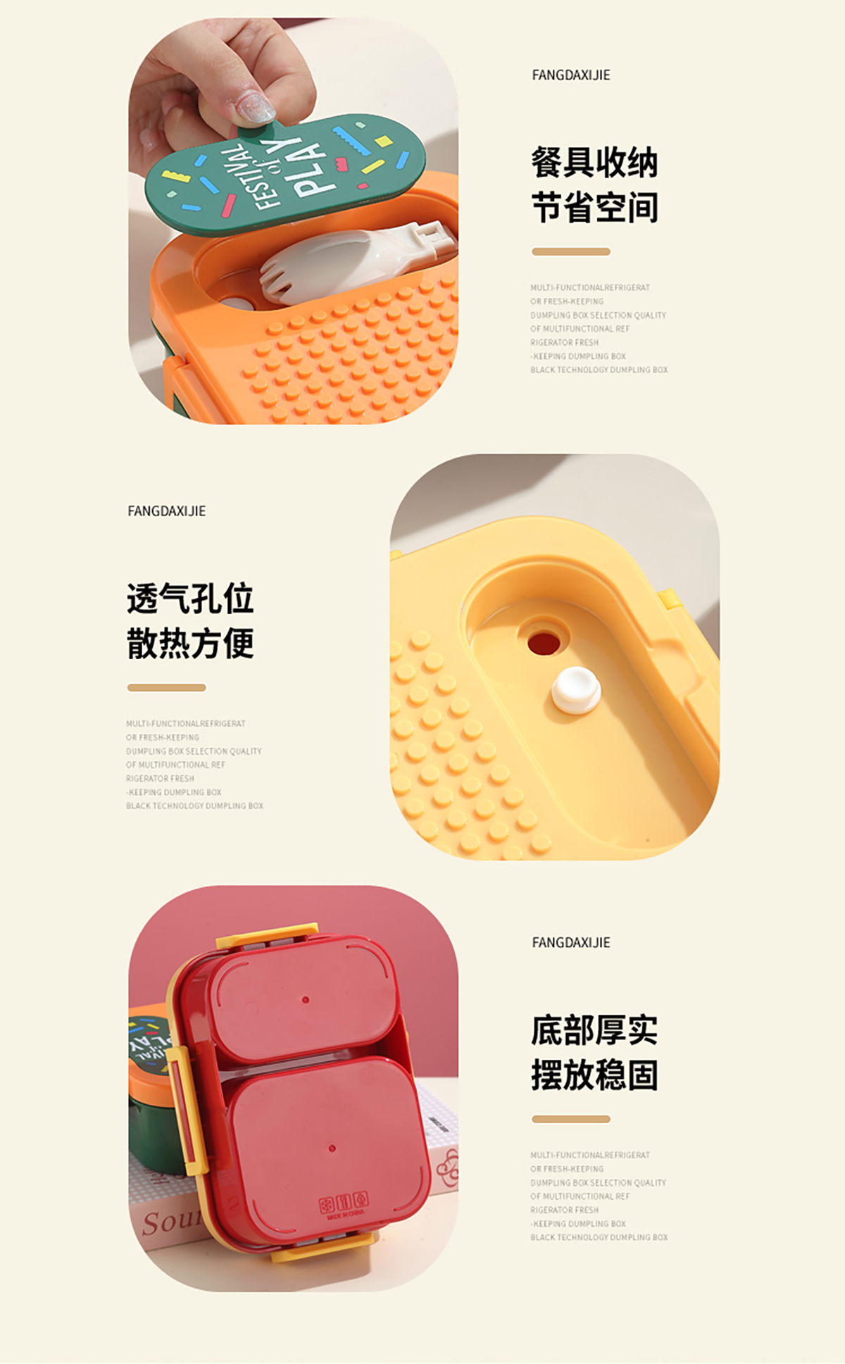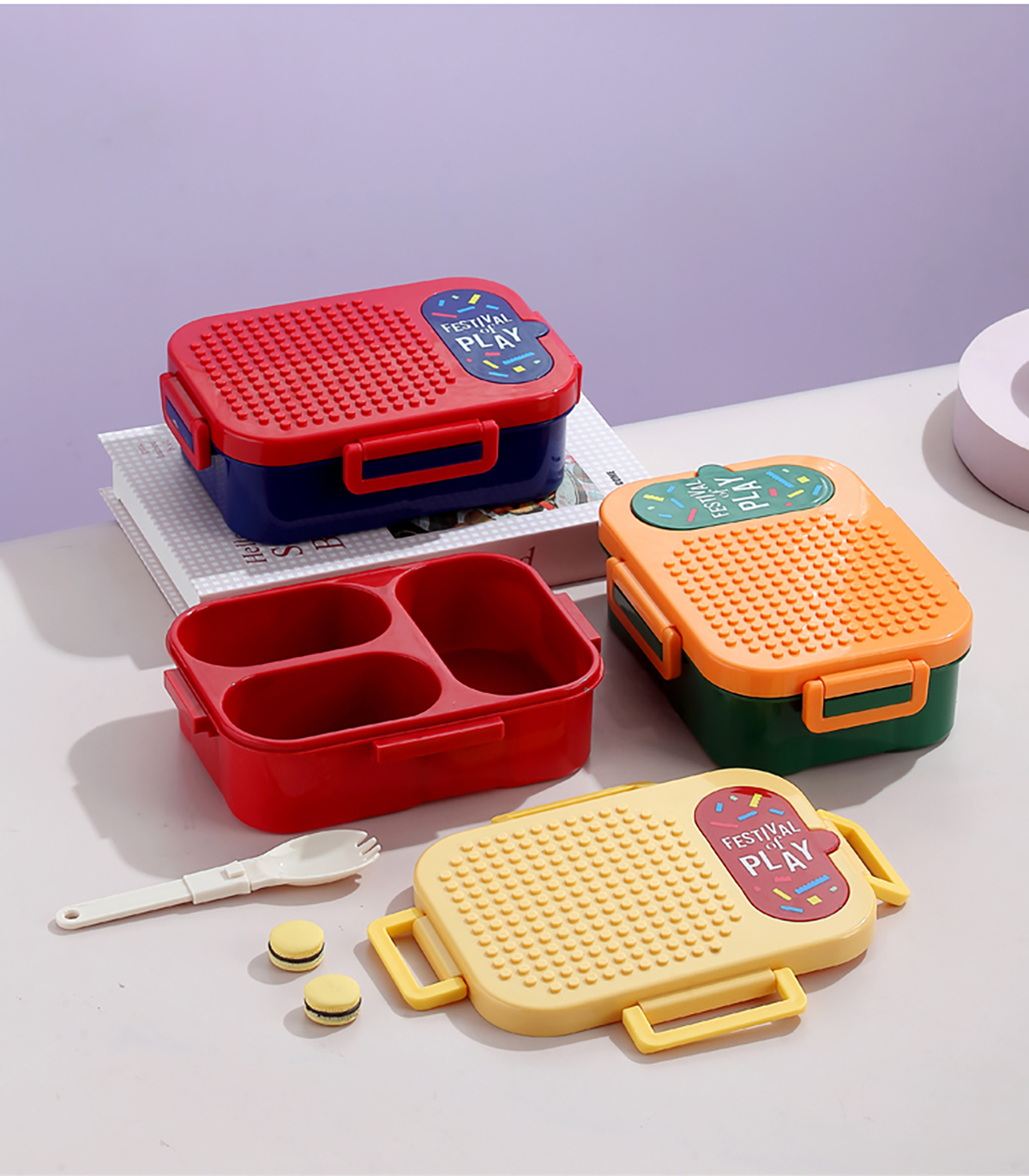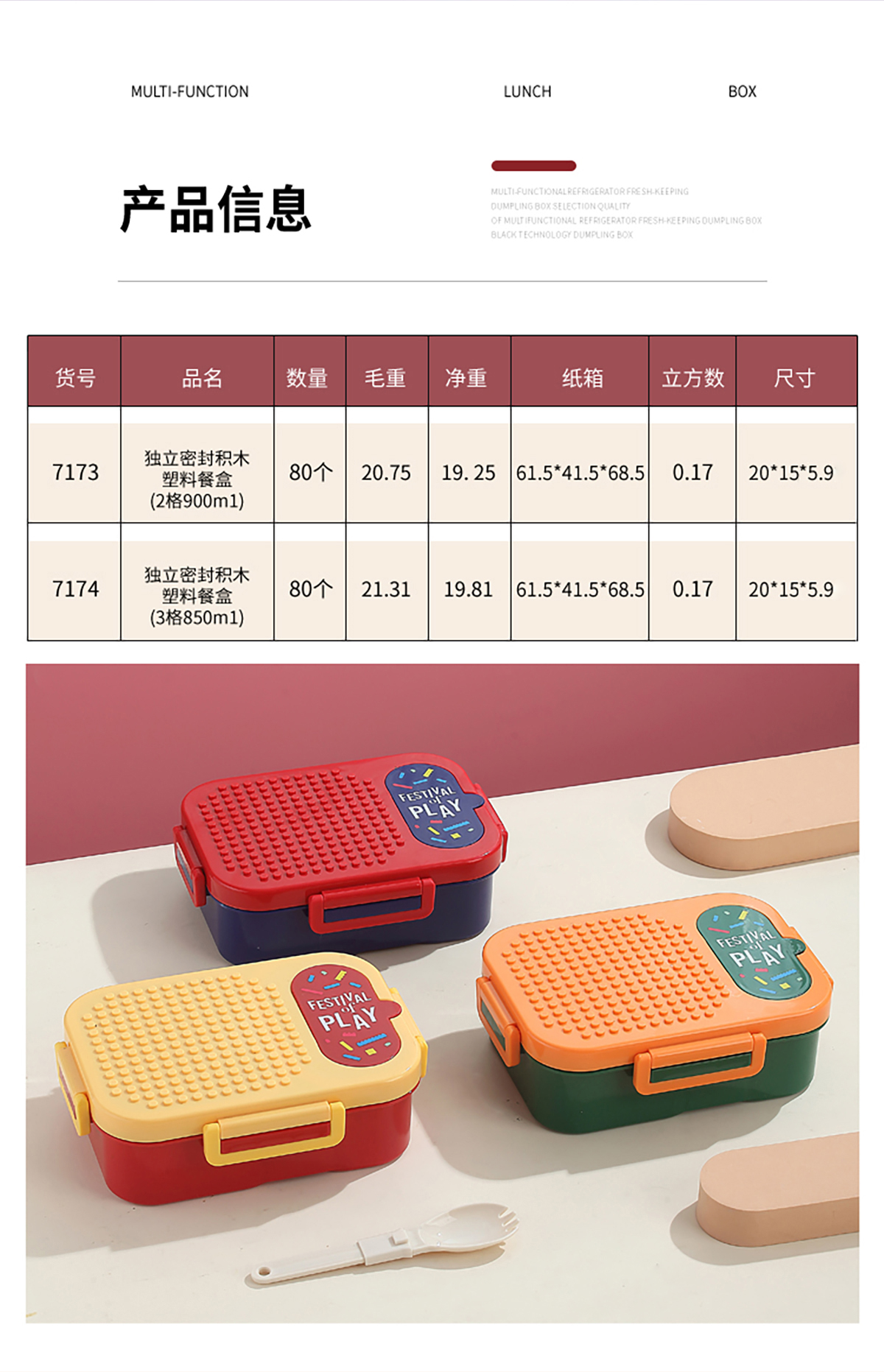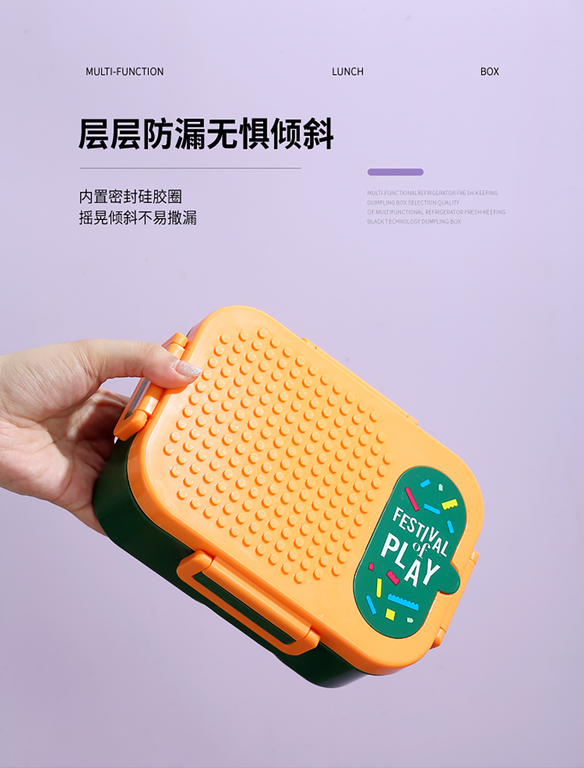 獨(dú)立密封積木塑料餐盒2格900ml/3格850ml (配PP折疊湯勺)