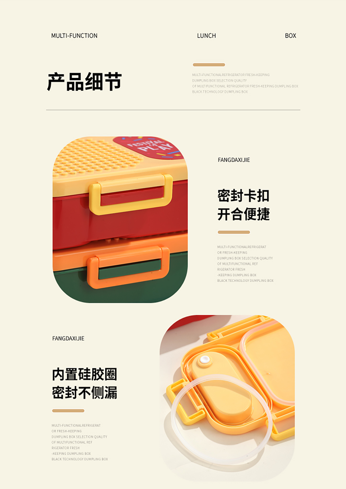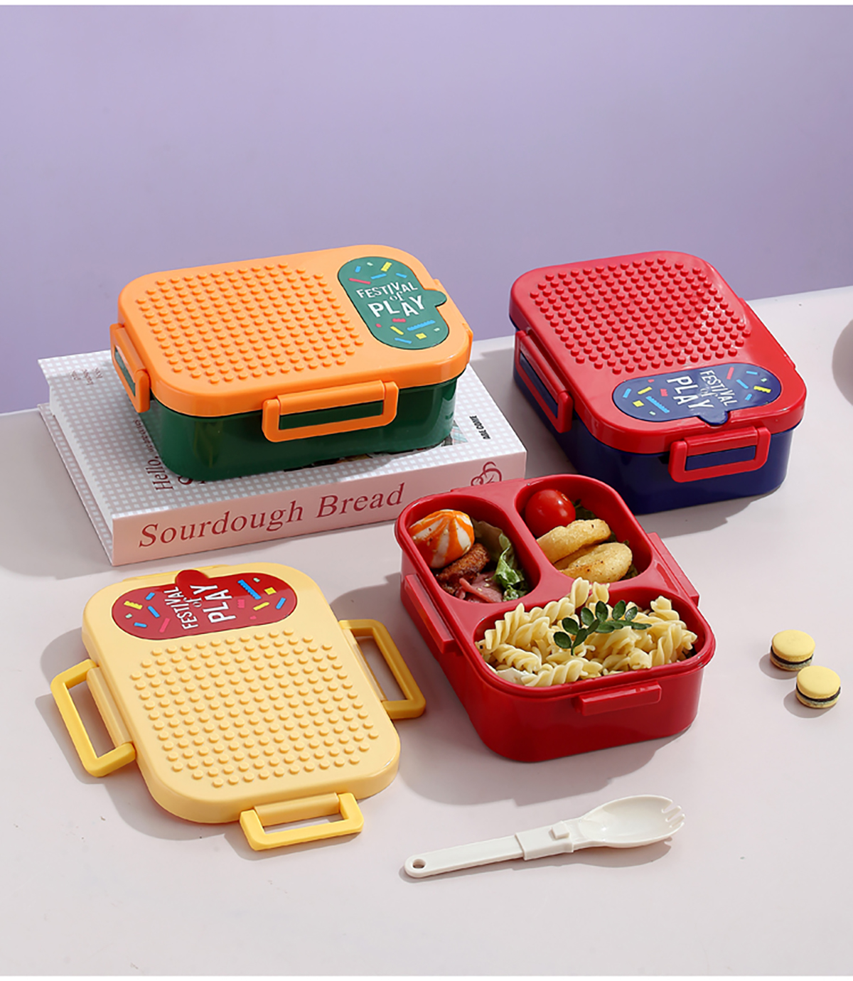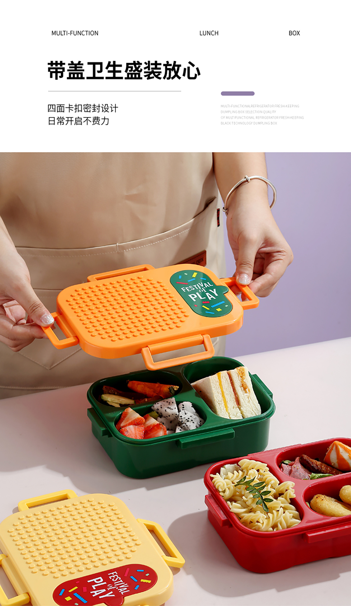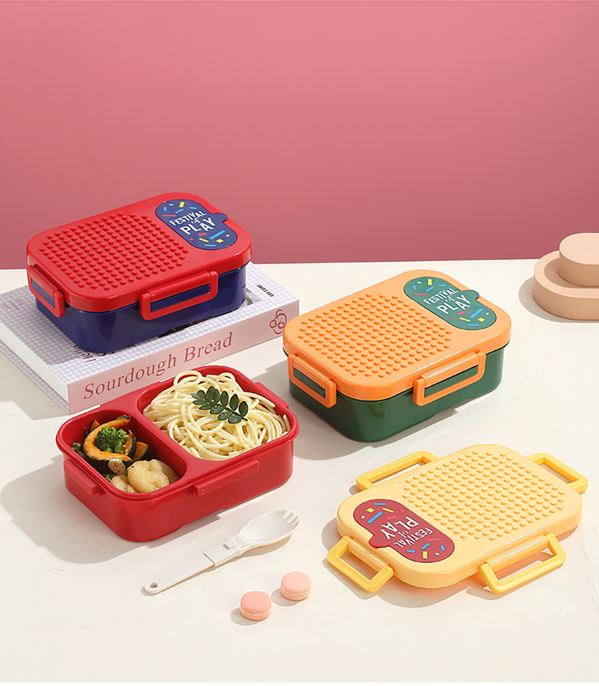 獨(dú)立密封積木塑料餐盒2格900ml/3格850ml (配PP折疊湯勺)