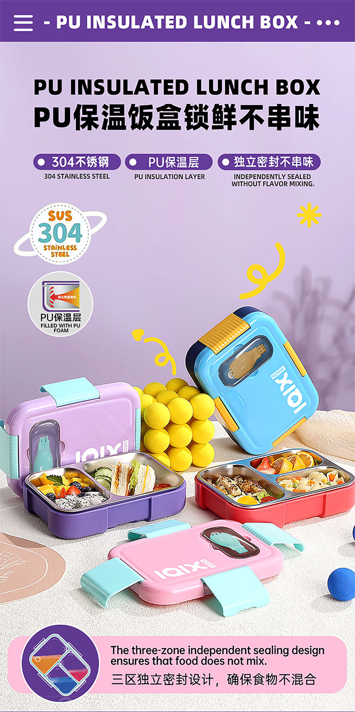 Size: AQX-2666(3格):216*155*60mm/750ml AQX-2667(2格):216*155*60mm/800ml