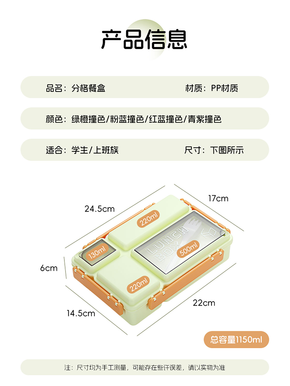 長(zhǎng)方分格飯盒1150ml