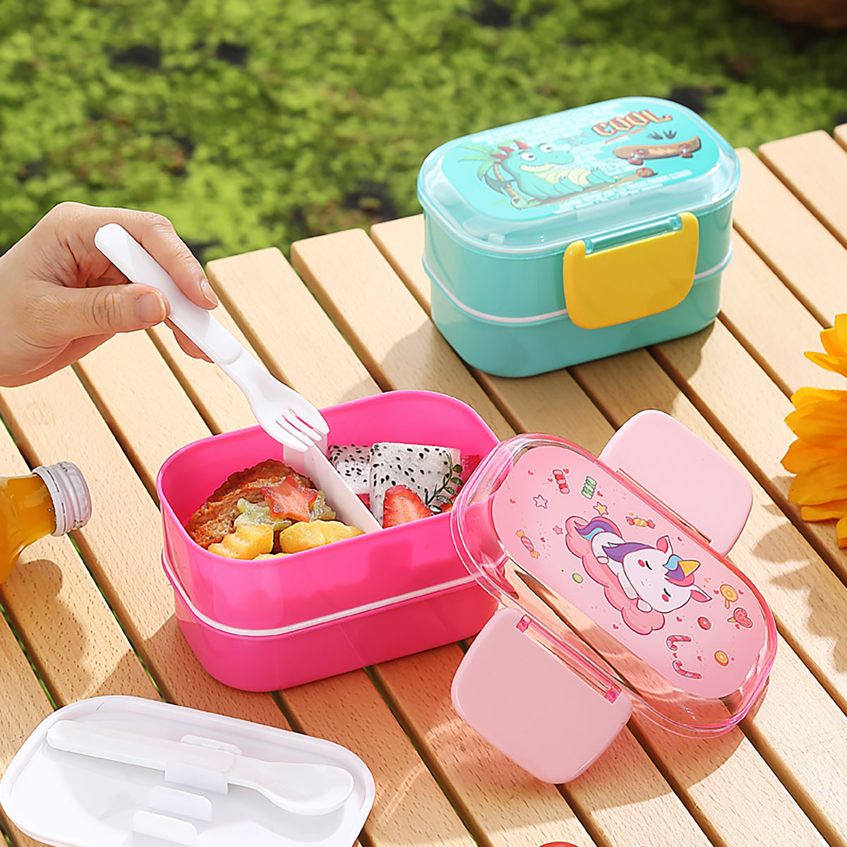 帶叉勺雙層兒童飯盒520ml