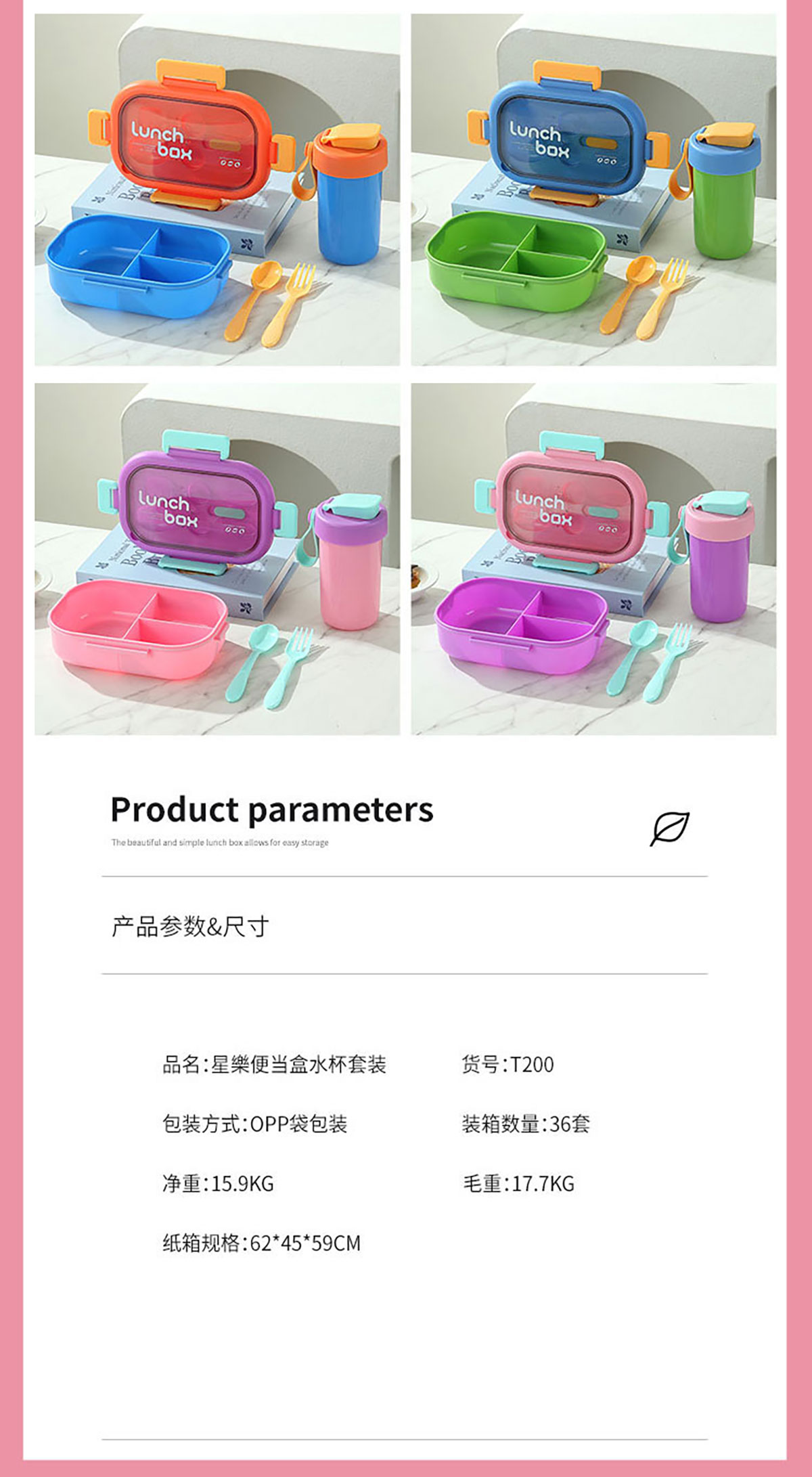 SWY-T200(水杯套裝):飯盒:215*149*68mm/1000ml 水壺:直徑82*161mm/480ml