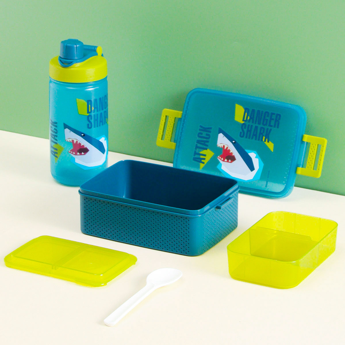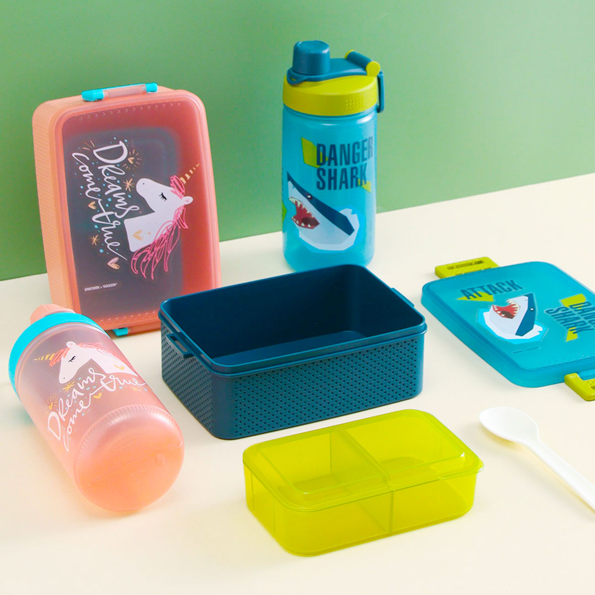 童彩3格飯盒+運(yùn)動(dòng)水壺套裝(含內(nèi)盒800ml+500ml)