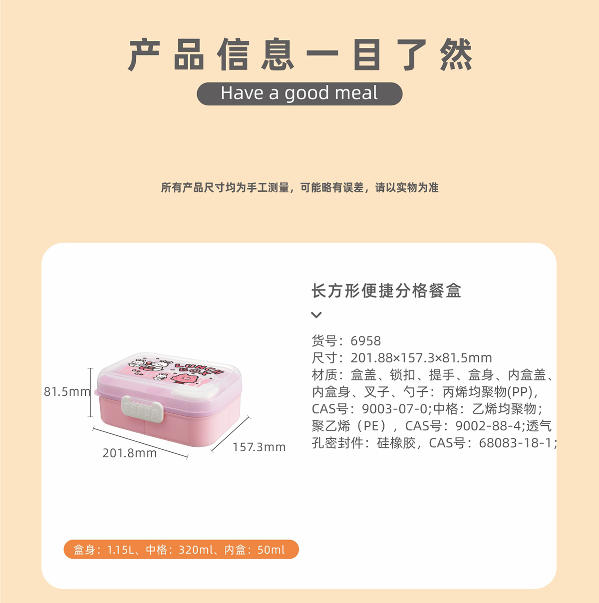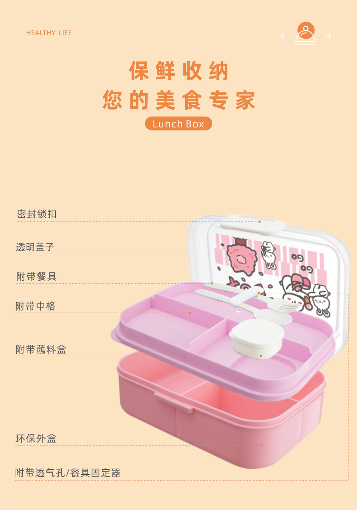 長方形便攜分格餐盒