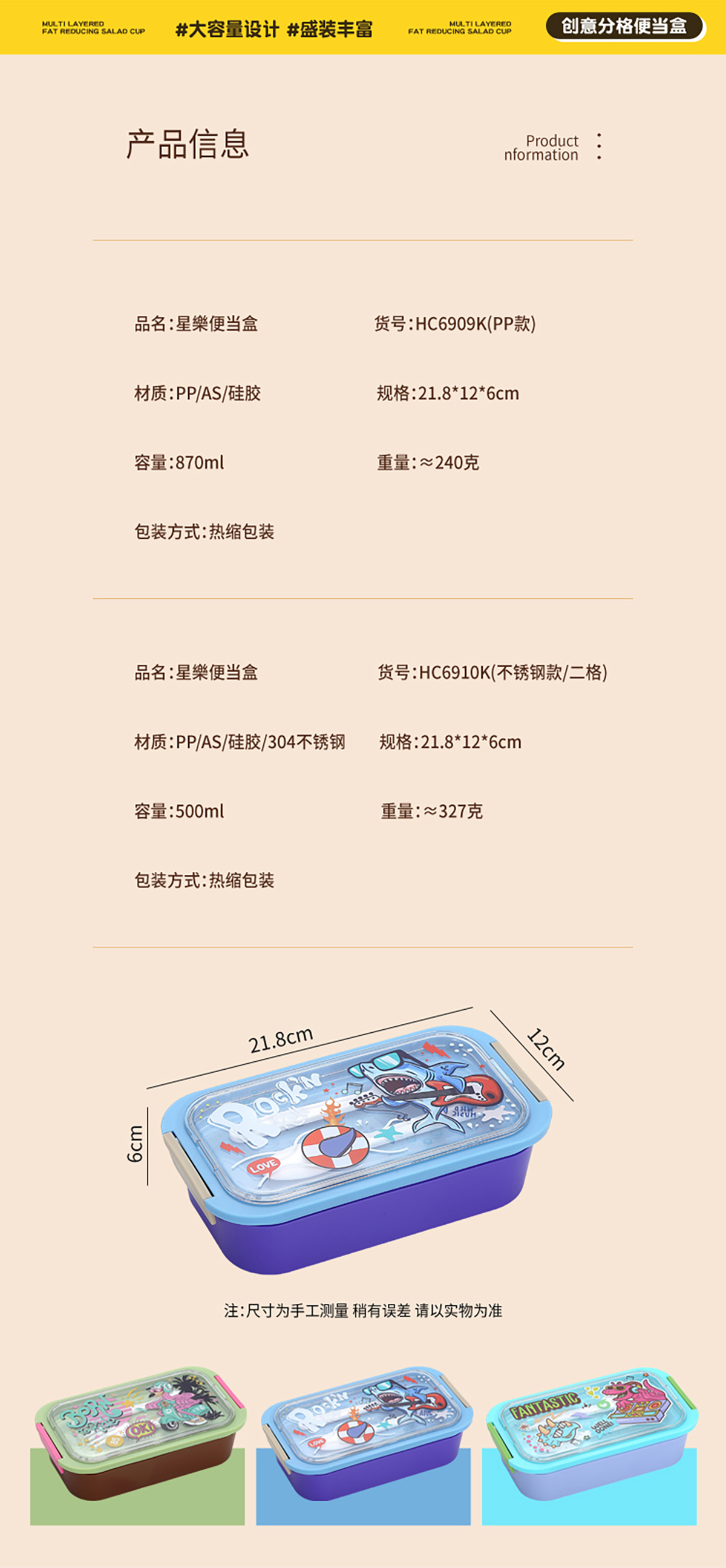星樂(lè)卡通便當(dāng)盒PP款750ml/不銹鋼款500ml