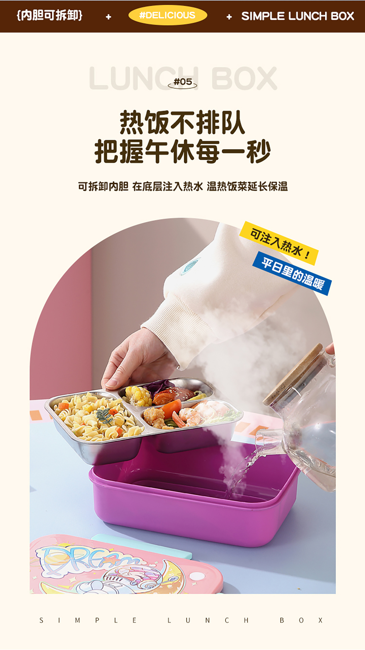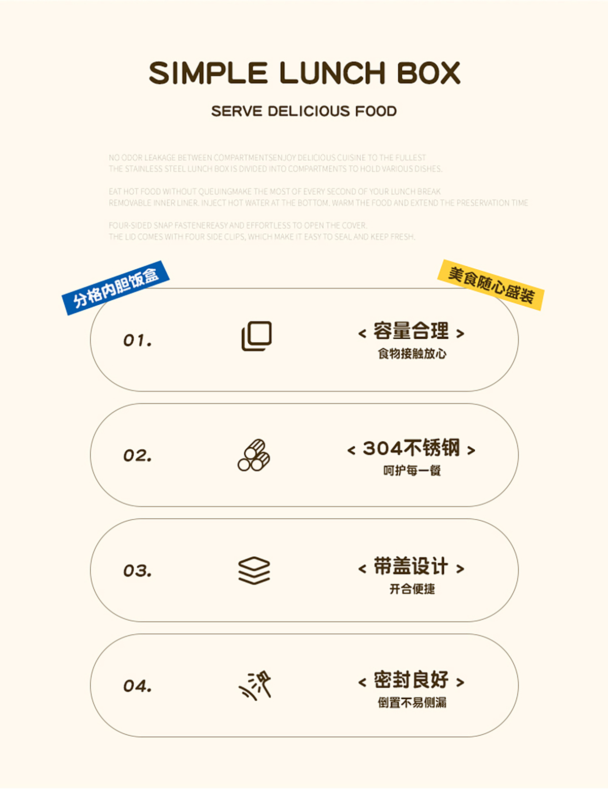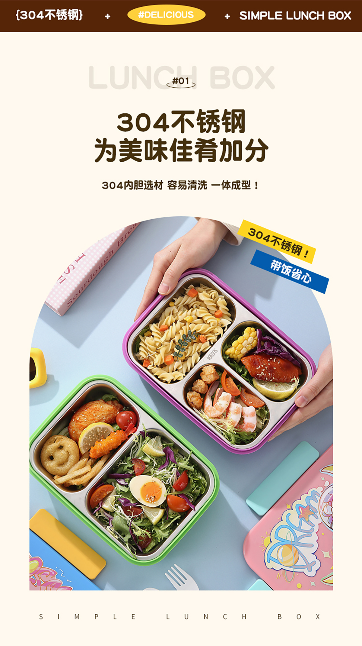 簡約不銹鋼分格飯盒(2分格/3分格)